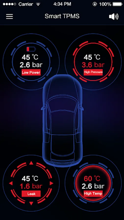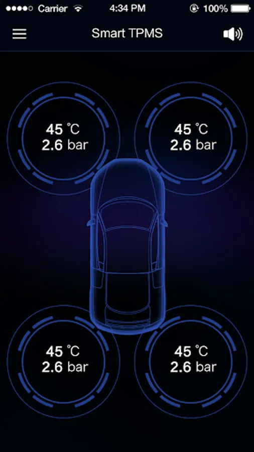 "Smart TPMS" is a designed for smart phones designed for tire pressure monitoring systems (TPMS) applications for Bluetooth 4.0+ smartphones, with Bluetooth TPMS sensor mounted on the tire pressure receiving four tires and the temperature in the car driving the process of tire pressure and temperature data to monitor, when the data is abnormal "Smart TPMS" can be a timely warning to ensure road safety appears.