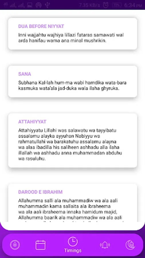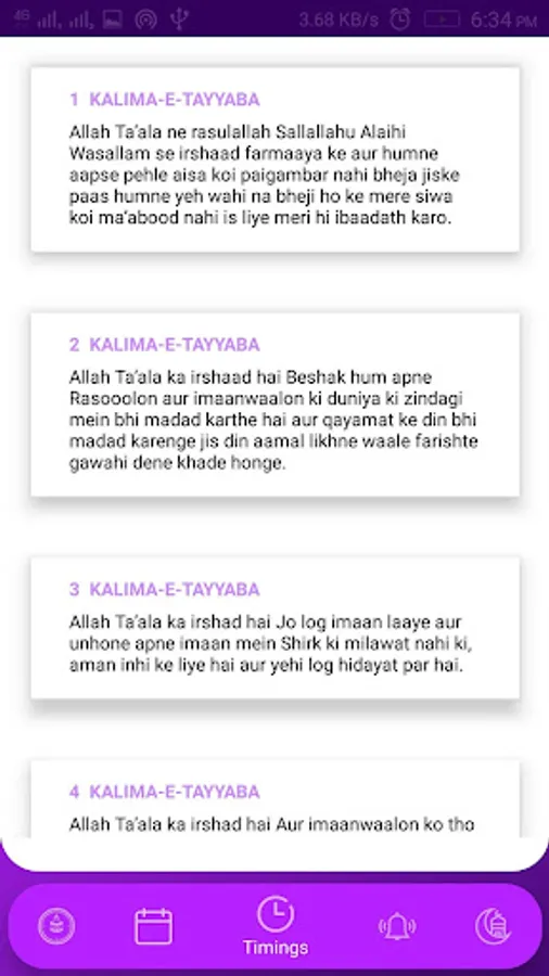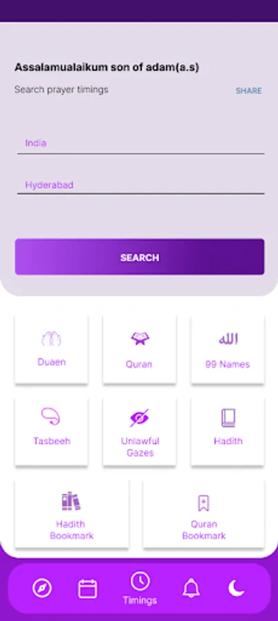 This Application provides you to Access Salah Timings Around the World and Also you can find Mosque near you, get Current Qibla direction and Read Hadees and use Hadees Notifier to Notify Hadees every day, It contains Hijri Calendar, Tasbeeh counter, Unlawful gazes book, Important dua for everyday need, 99 names of Allah, Ghust ke Dadaab. This application is mainly made for the people who do not know how to read the Quran, so the application has provided with Transliteration and Translation.