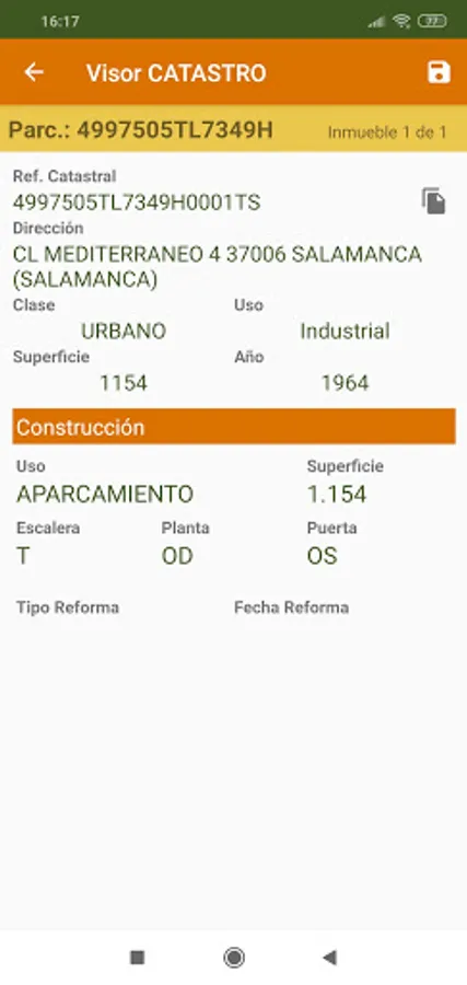 View the cadastral information and copy, if you wish, the cadastral reference of the property.