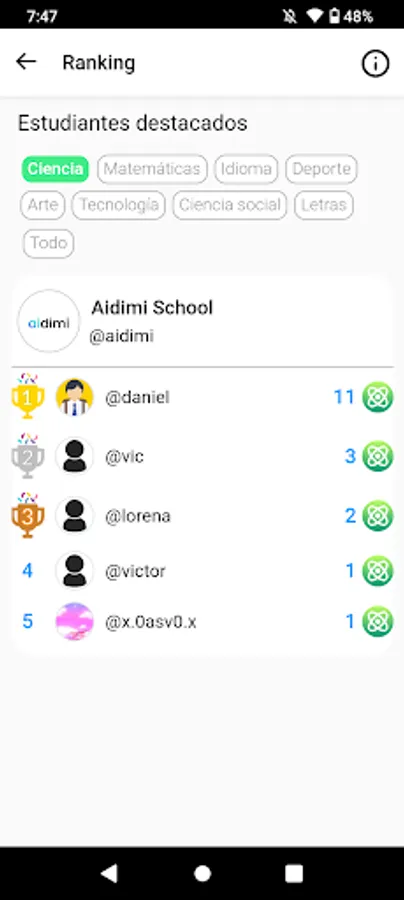 Aidimi enhances the genius of each student and the educational creativity of each teacher with gamification, data and artificial intelligence.