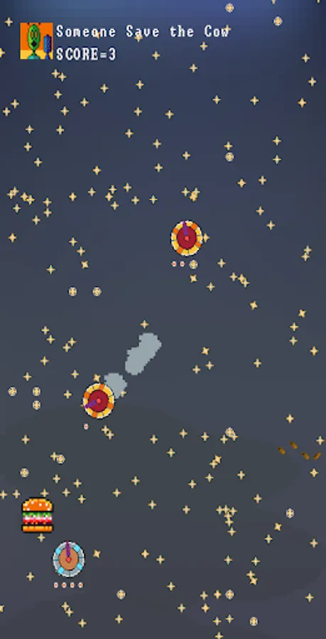 Sometimes the only survivors from the destroyed UFOs are abducted cows and spherical chickens. You can choose to save them or "lase" them to fastfood for shields... Your call :)