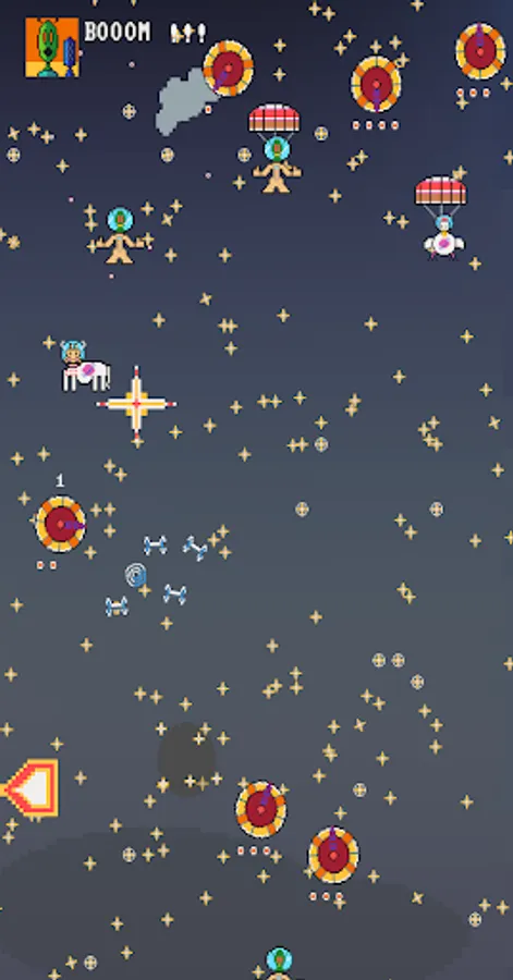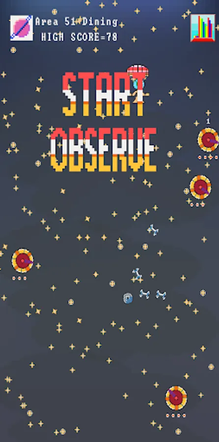 This is a simple but "brutal" game with dark humour where you try to control a drifting flying saucer. Use your skills to position yourself to get a perfect shot on a foe. Rescuing a fellow warrior makes you earn points.