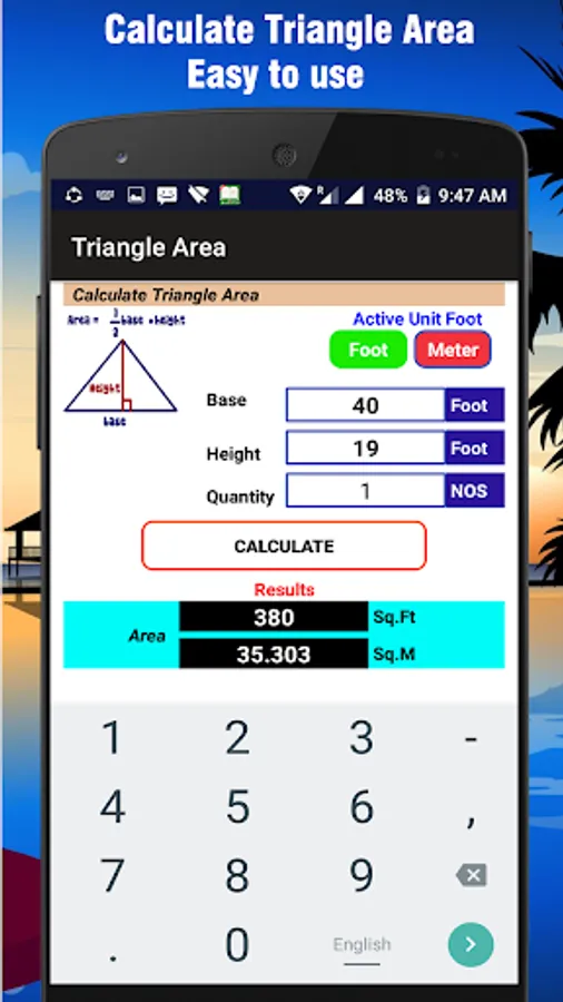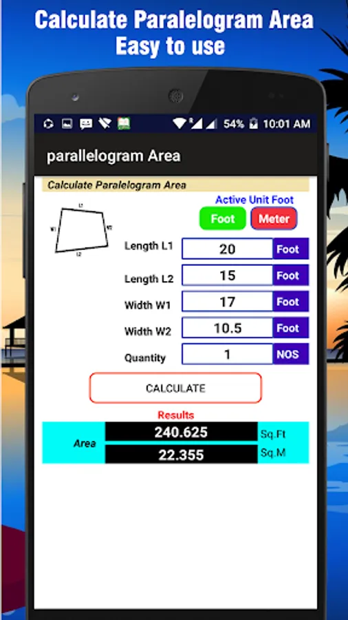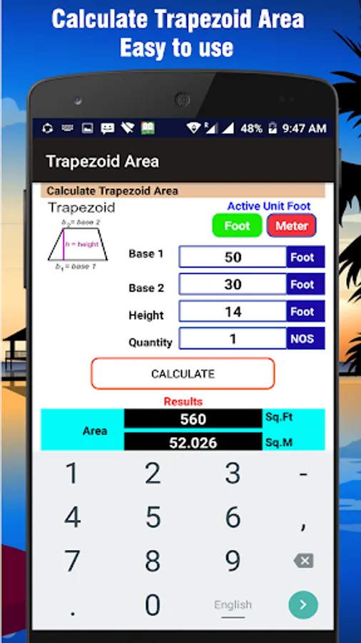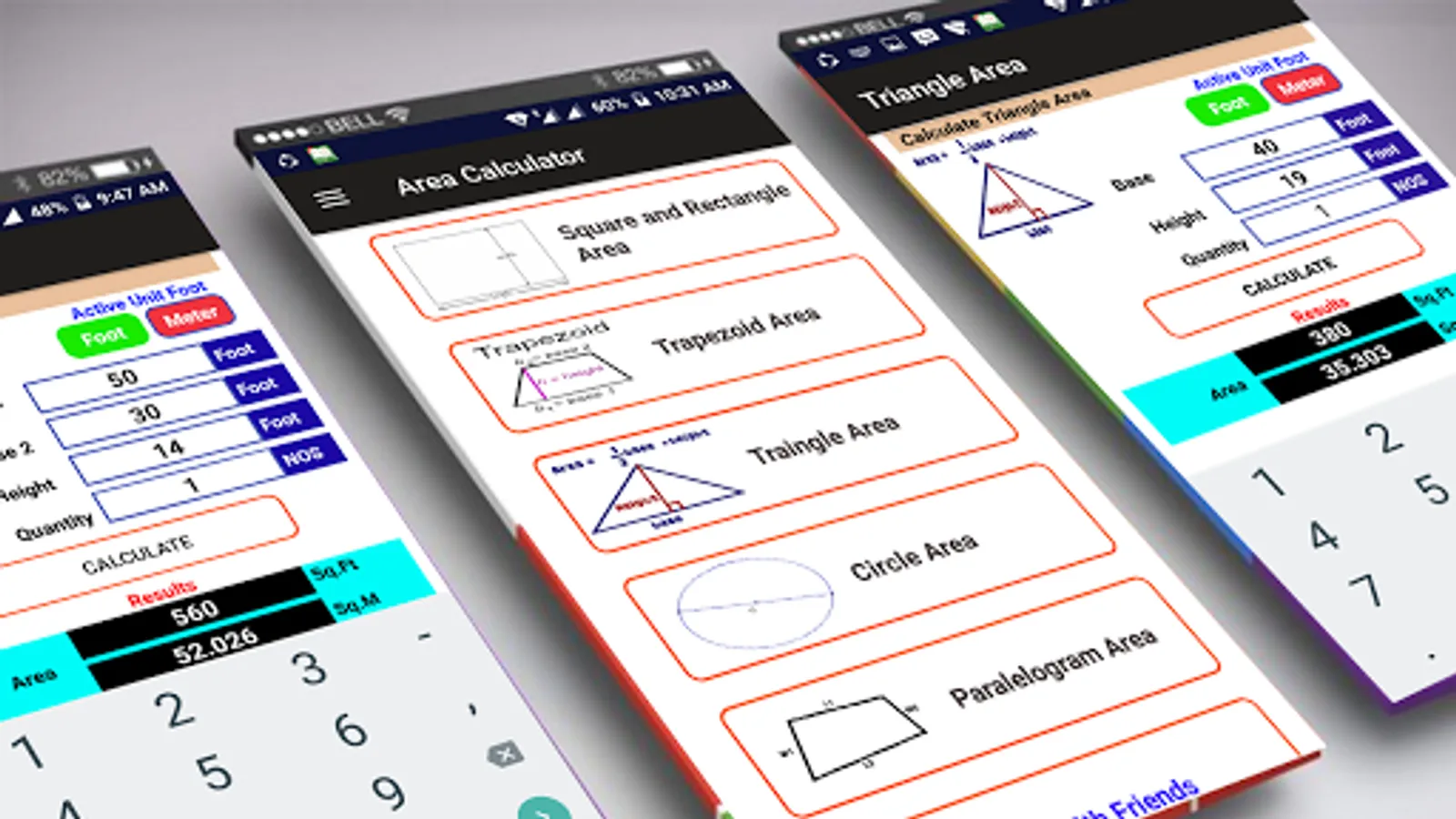 All in one. Calculate Square, Rectangle, Triangle, Trapezoid, Parallelogram Area