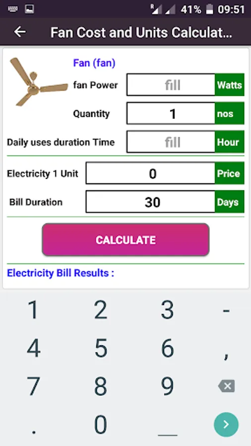 You can calculate Quantity of Fans Consumption Electricity Units and Units Cost With Daily hours basis.