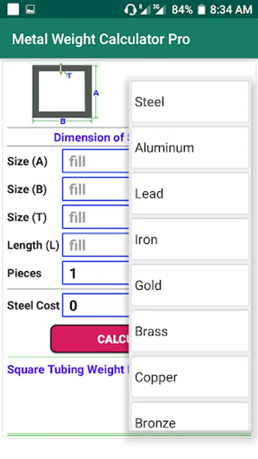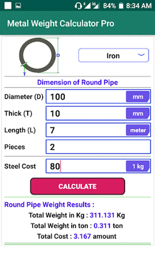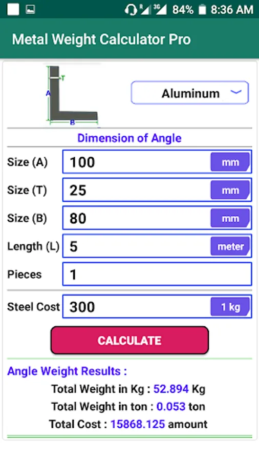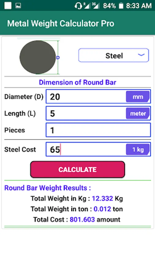 Metal Weight Calculator is a fast and simple app for calculating weights of Steel and metals. Or you can specify weight of the metal to get the length.