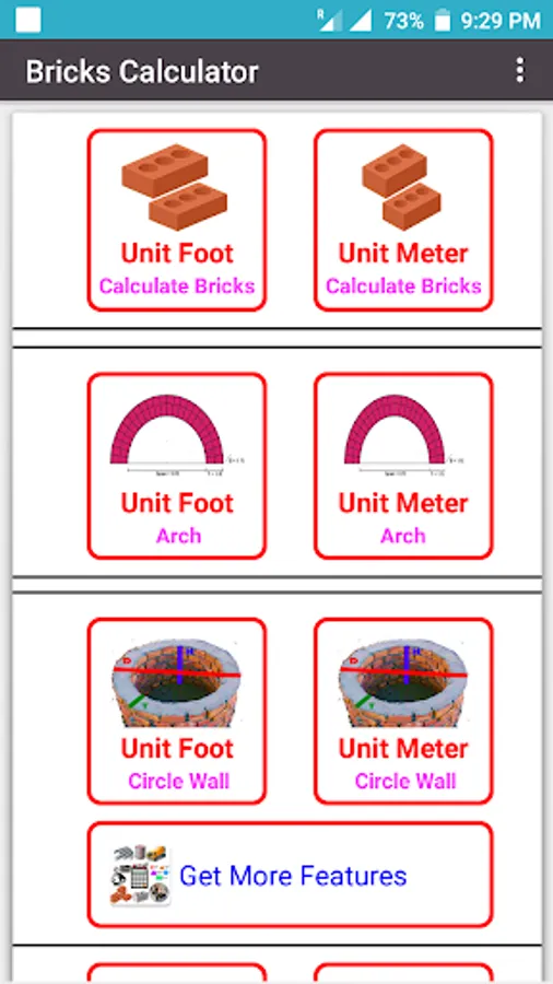 Bricks Calculator (Arch, Circle, Wall, Volume).