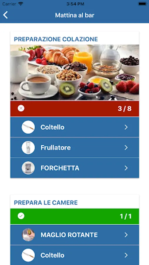 - task assigned to the individual user with textual description of the activity in high comprehensibility, accompanied by checklists (with tips) with photos and / or videos of each activity