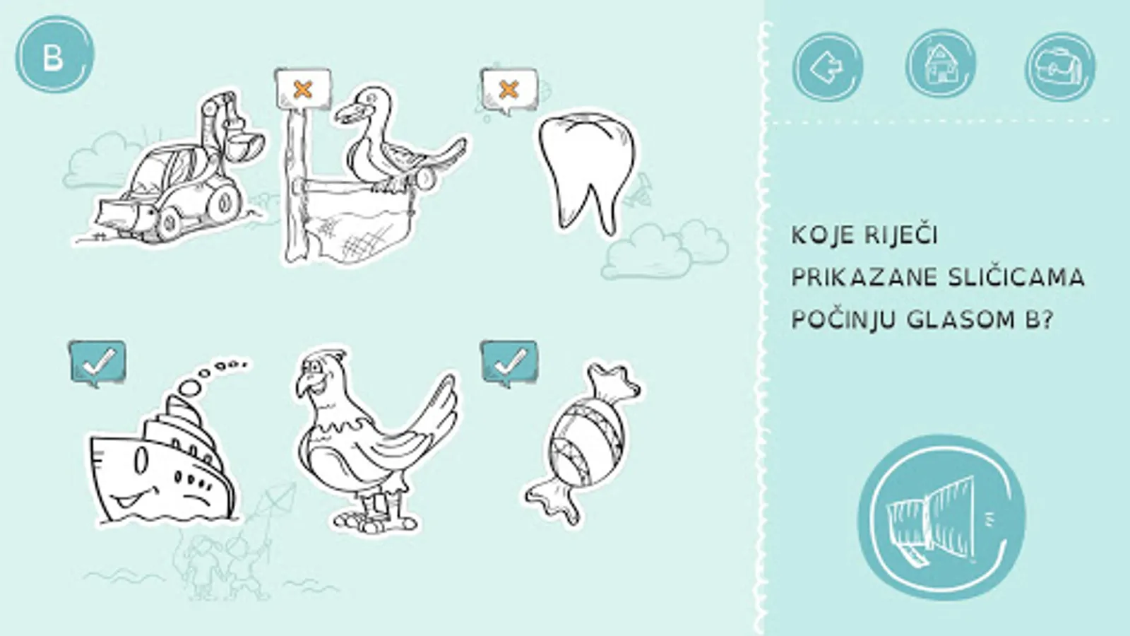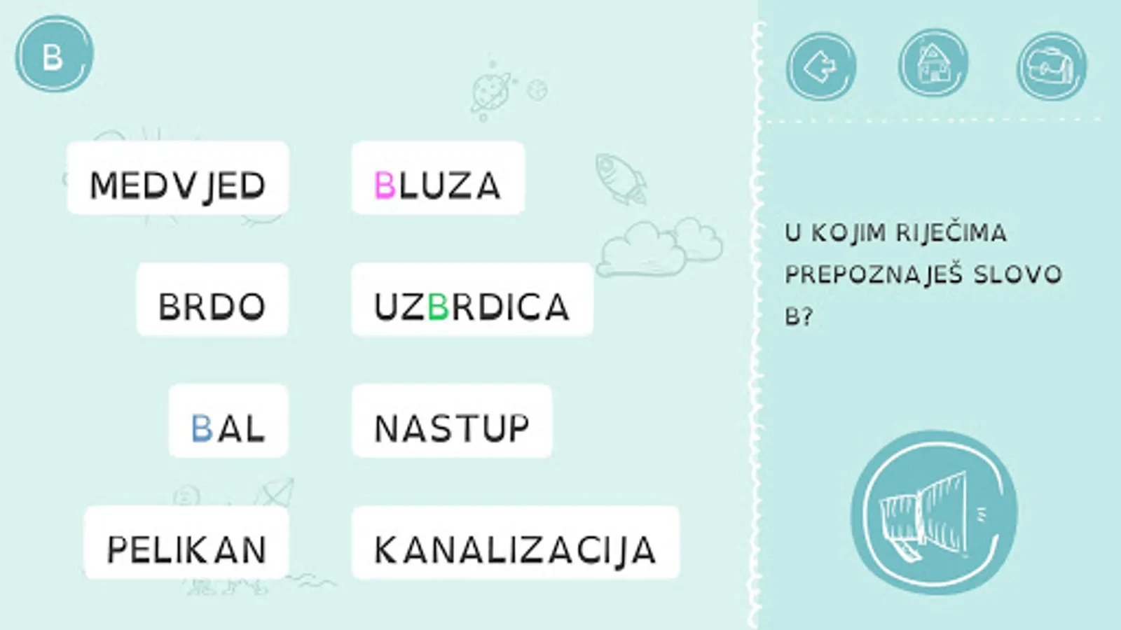 The game handles letters with methodically arranged tasks that are accompanied by sound recordings for independent learning, and the tasks abound in sympathetic illustrations and riddles in rhyme, which makes the learning process fun and motivating.