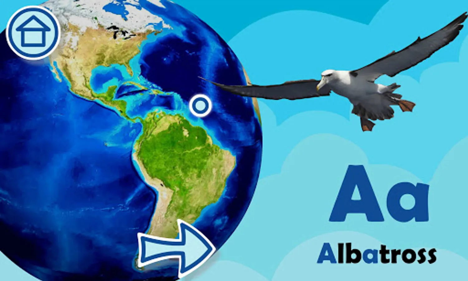 An ABC with animals free English alphabet application gives you and your kids a great possibility to learn the English ABC. While moving from letter A to letter Z you will travel around the globe. Each letter of English alphabet is illustrated by an animal and the place on the earth where that animal lives. You can press on a letter and hear its pronunciation.