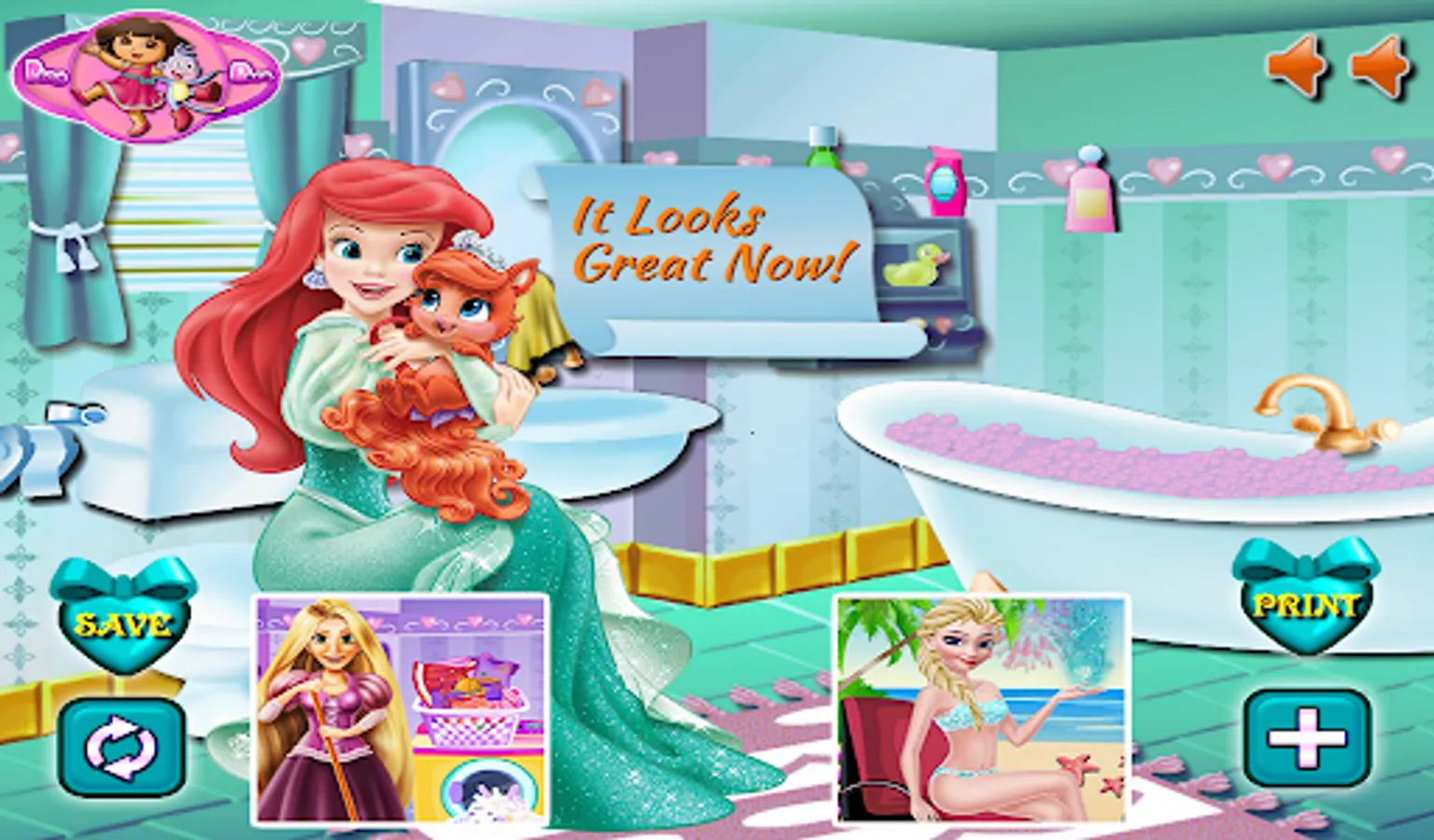 Play this cleaning game with many different cleaning activities like putting all the messy things in their right place and throwing the trash items in the trash first of all. Then the beautiful house cleaning activity will start cleaning the house by removing spider webs and dusting the walls with sponge. Finally, buy a clean floor, a new bathroom, and a mop. And your home looks gorgeous and shiny..