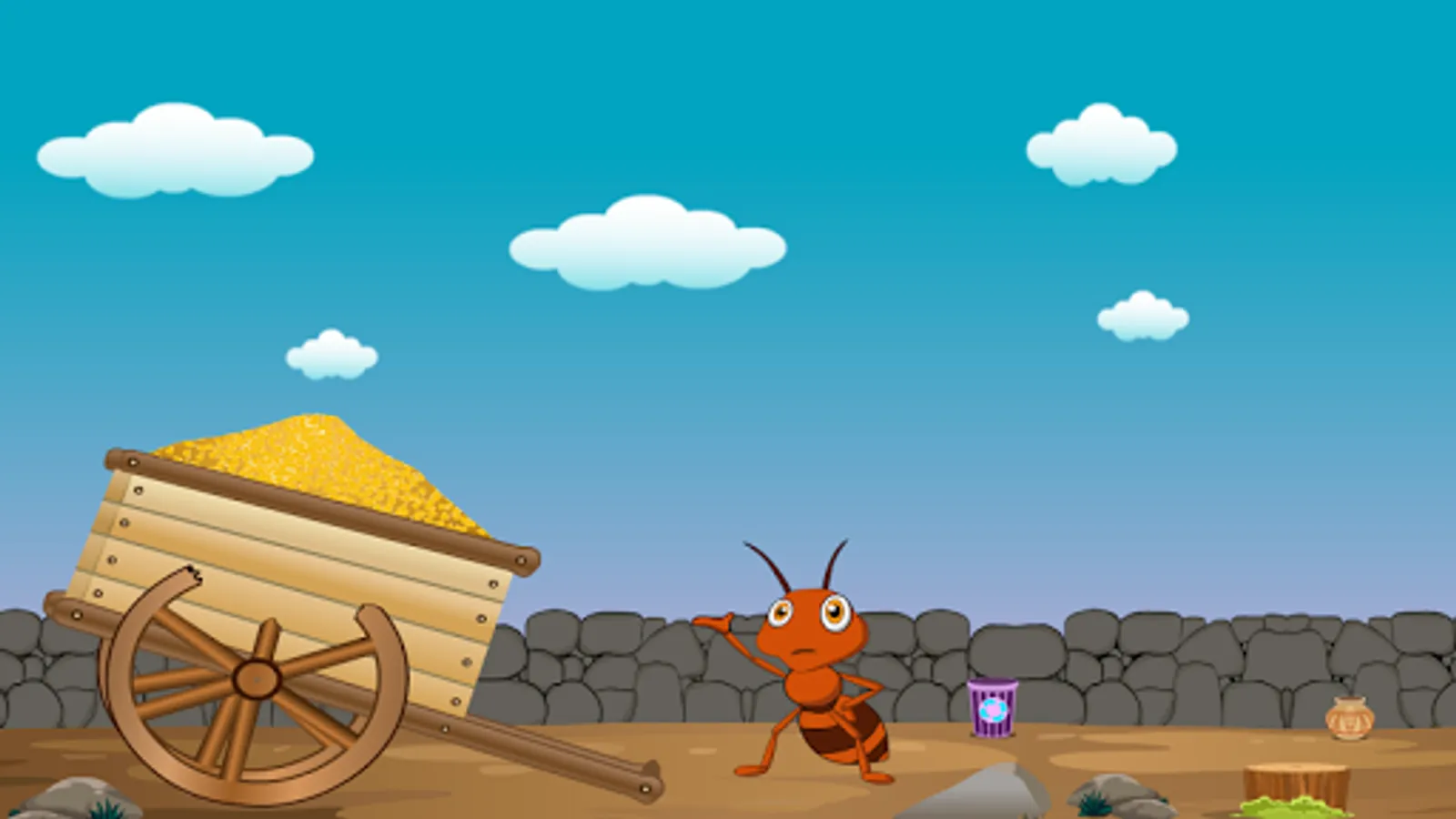 Games2Jolly - Ant Cart Escape is another point and click escape game developed by Games2Jolly Team. In a world of ants there were different type of ants living happily. Our ant friend here is one of them and he does agriculture for living. That was the market day and the ant loaded all its vegetables on a cart and is driving the cart towards market but unfortunately one of the wheels was broken. He didn't bring any Stepney wheel for the cart. Help him in finding a cart wheel by searching nearby objects and manipulating them. Good luck...
