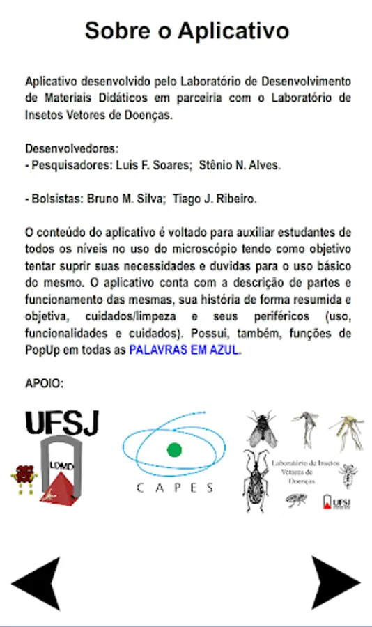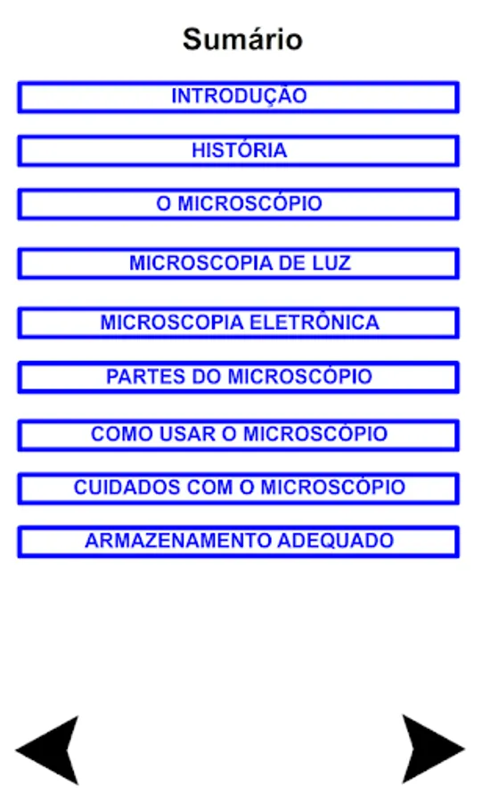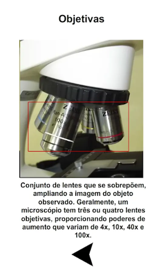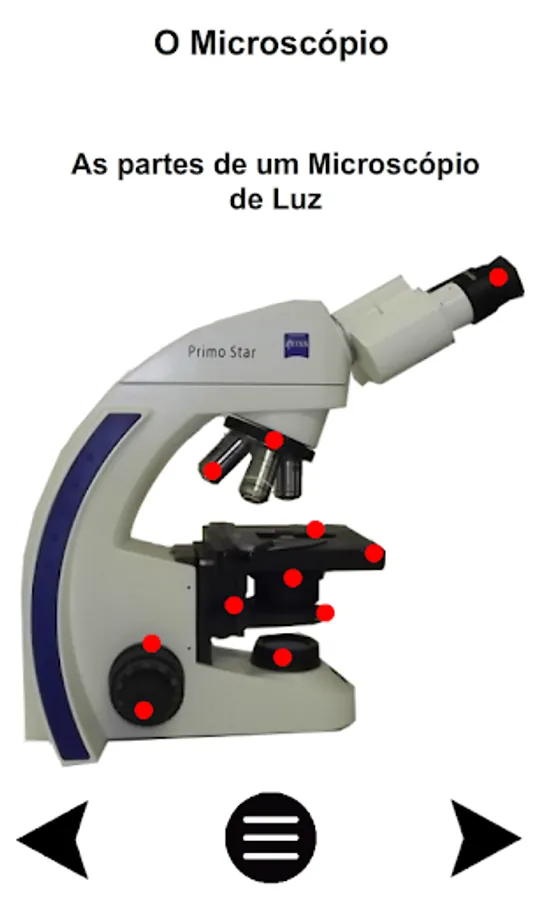 The application content is geared to help students of all levels in the use of the microscope with the objective of trying to meet their needs and doubts for the basic use of it.
