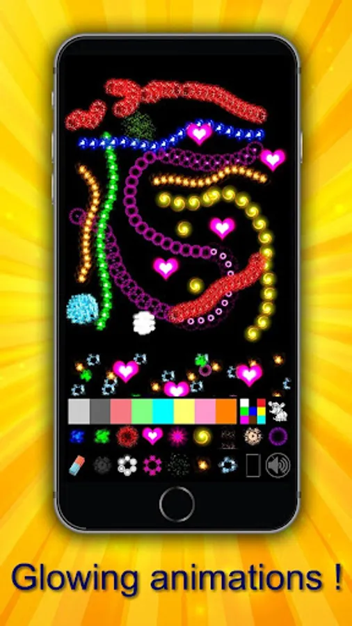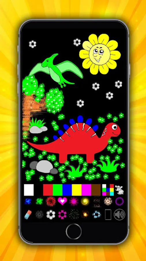 kids doodle glow, glowing paint for kids, best kids games. kids can doodle with glowing animations. there are 16 glowing animations, each with different color. your child can draw by himself and enjoy glowing animated drawings. there is also great kids music. we have another doodle application for kids with coloring pages so check it out.