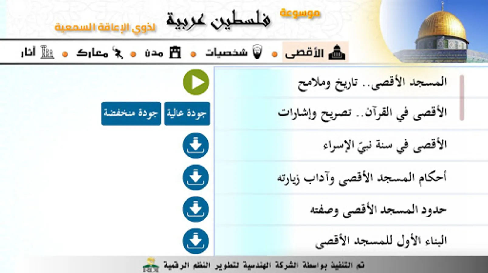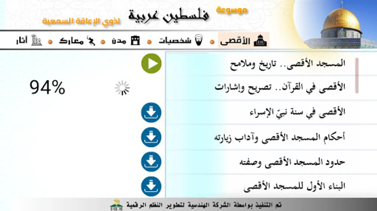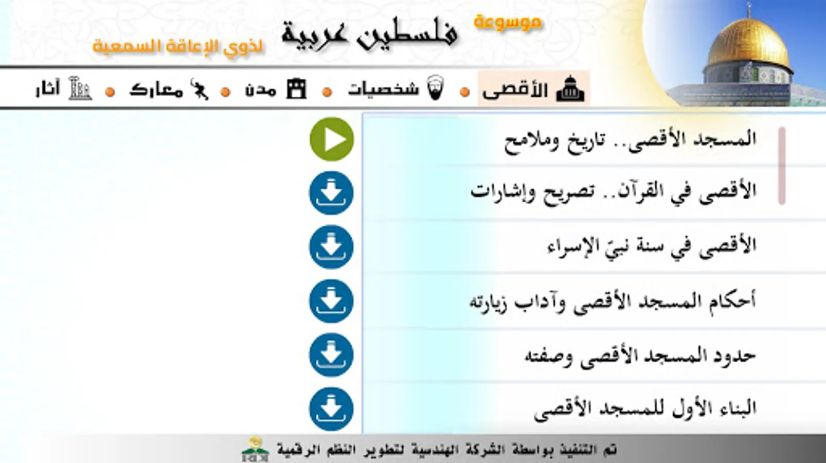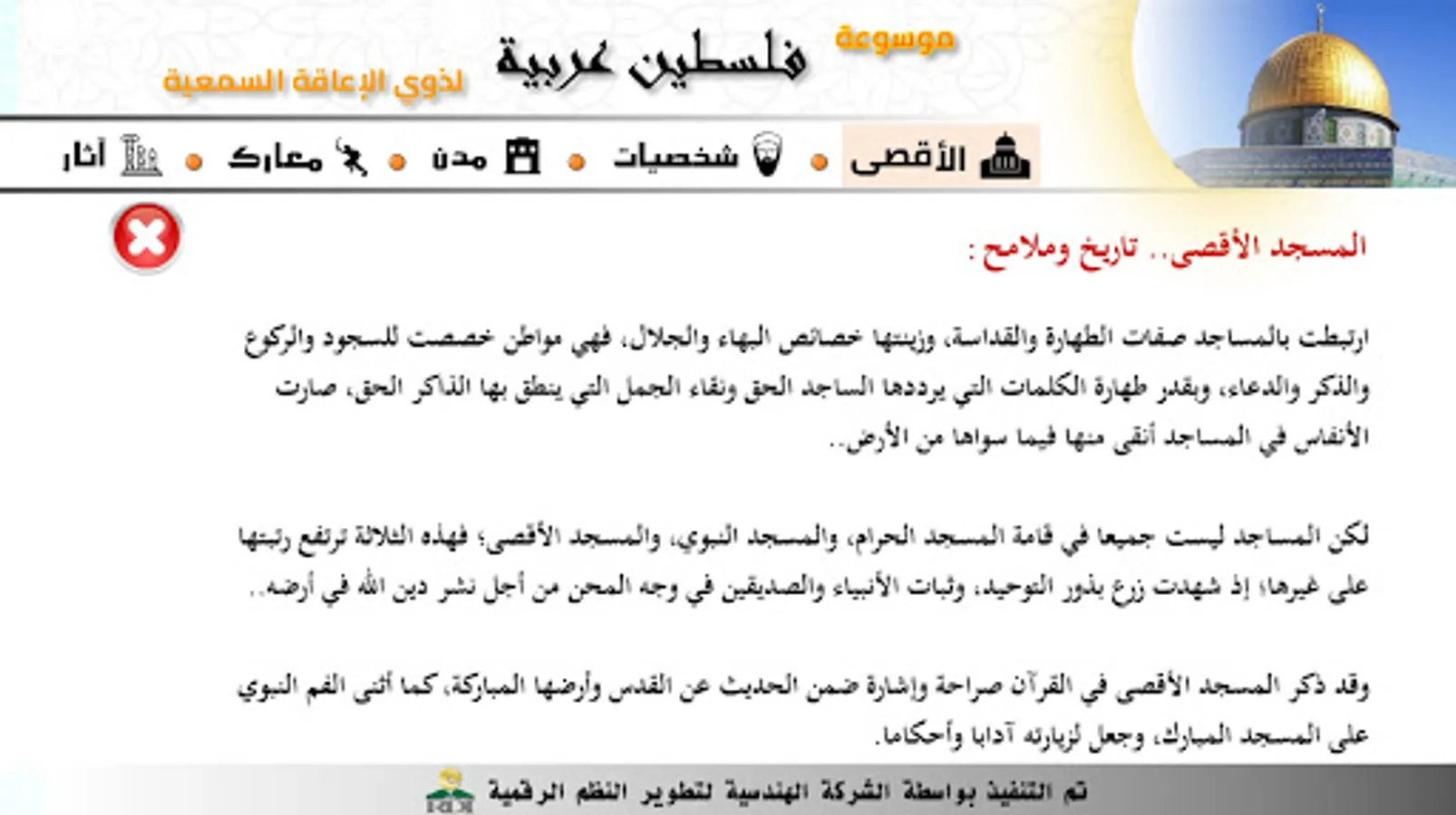 The definition of people with hearing disabilities in Palestine and its most important cities, personalities, battles, cultural features and Arab identity through the sign language accompanying the explanation of voice and texts in a simplified educational method based on documented historical and knowledge sources.