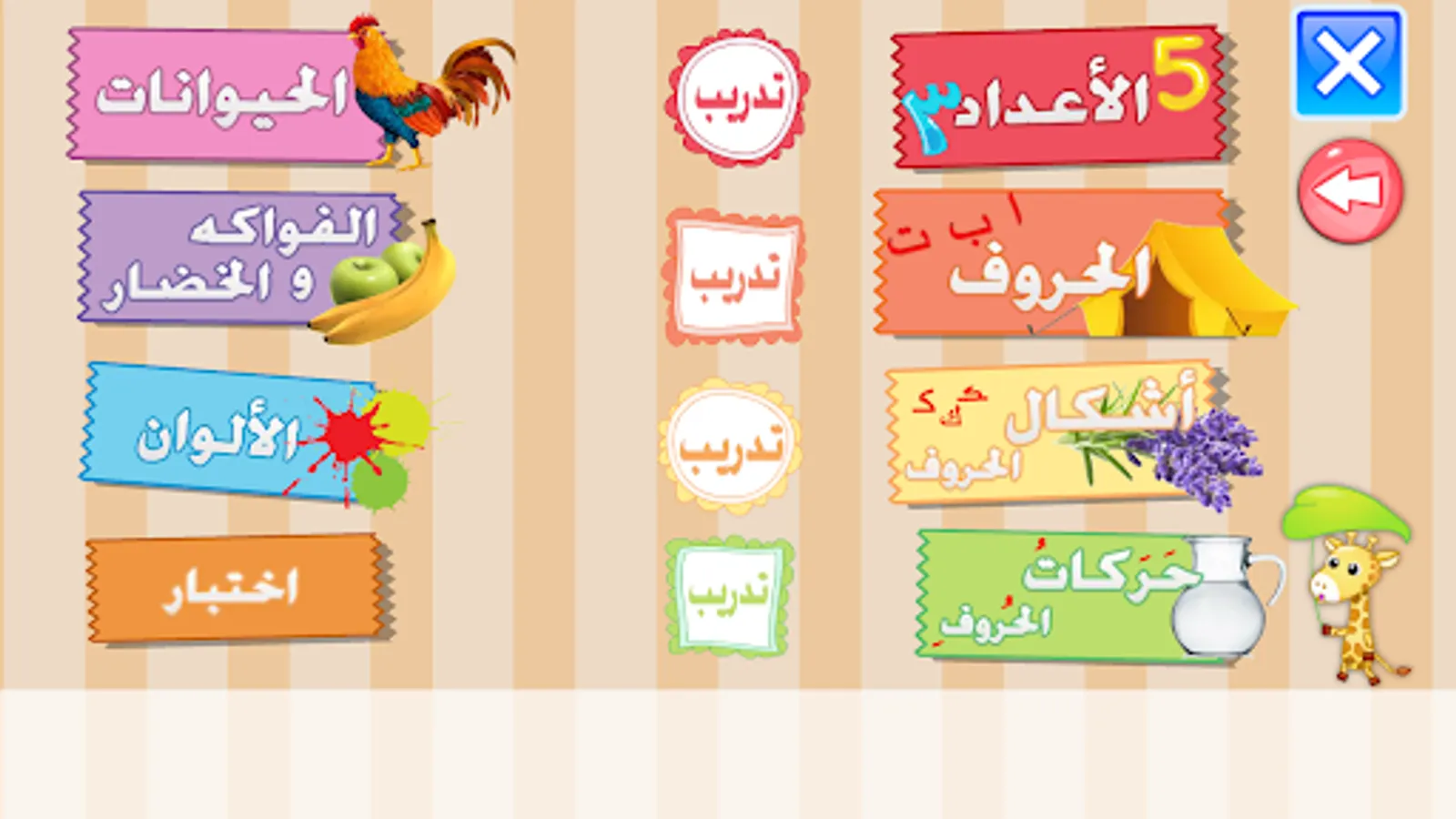 Each letter has a picture with the pronunciation of an animal, plant and inanimate