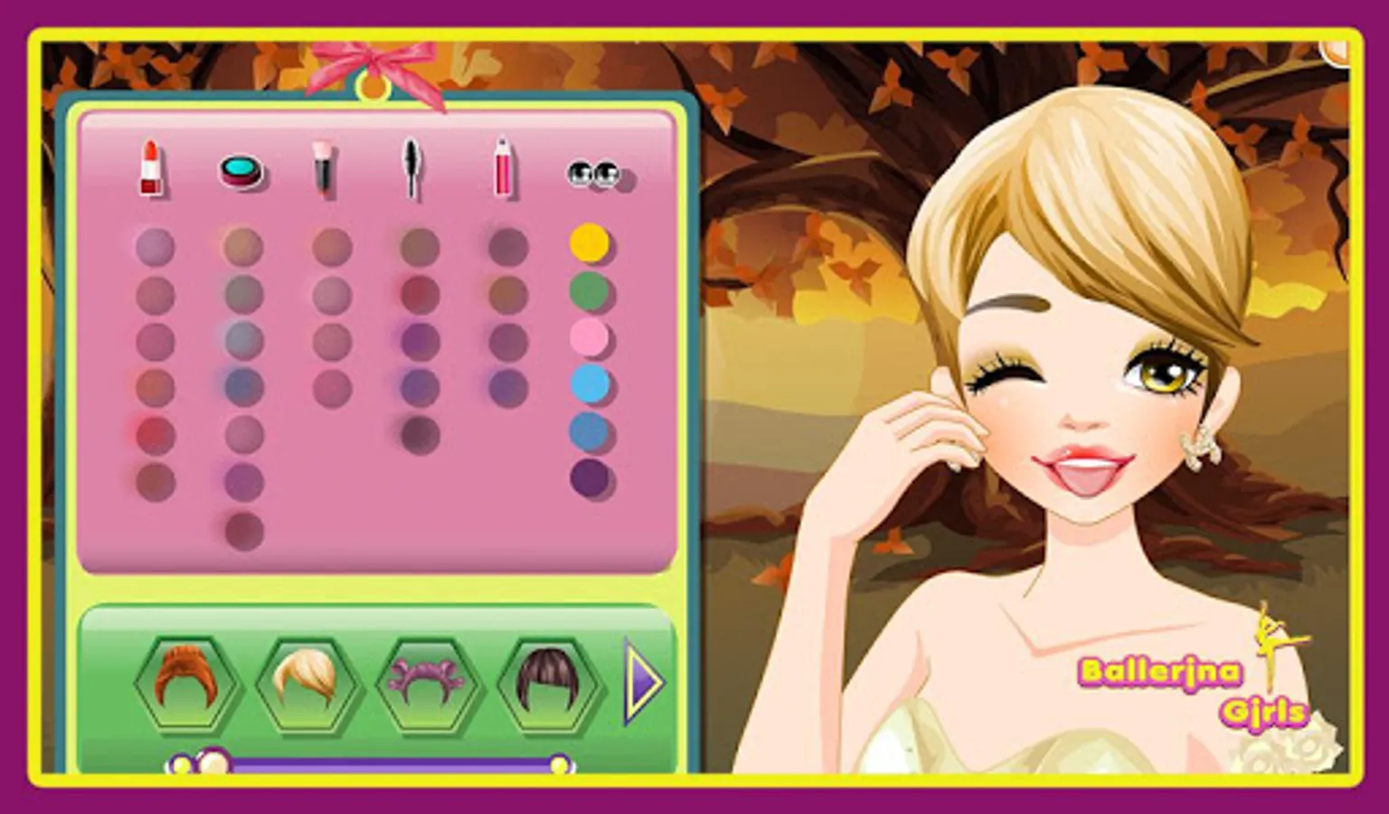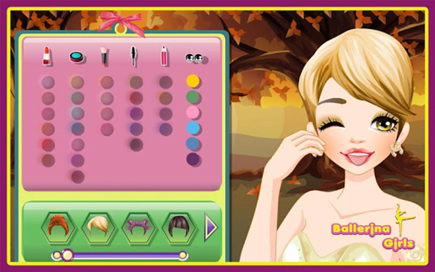 In this game you will help these three lovely girls turn into beautiful ballerinas. Choose their hair style, the make-up, skin color, blusher, foundation, lipstick and mascara. Find them nice clothes, shoes and accessories. You can spend hours perfecting their looks.