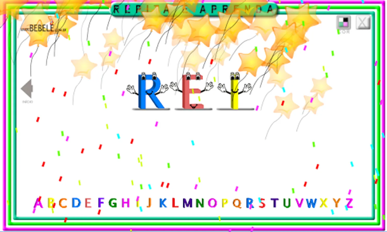 Game that teaches to read 3-letter words, with sound and cartoons.