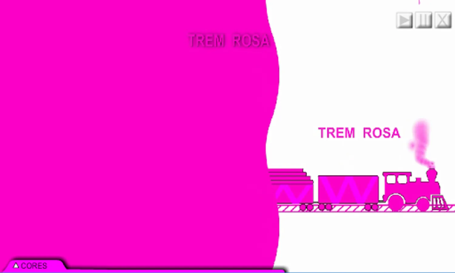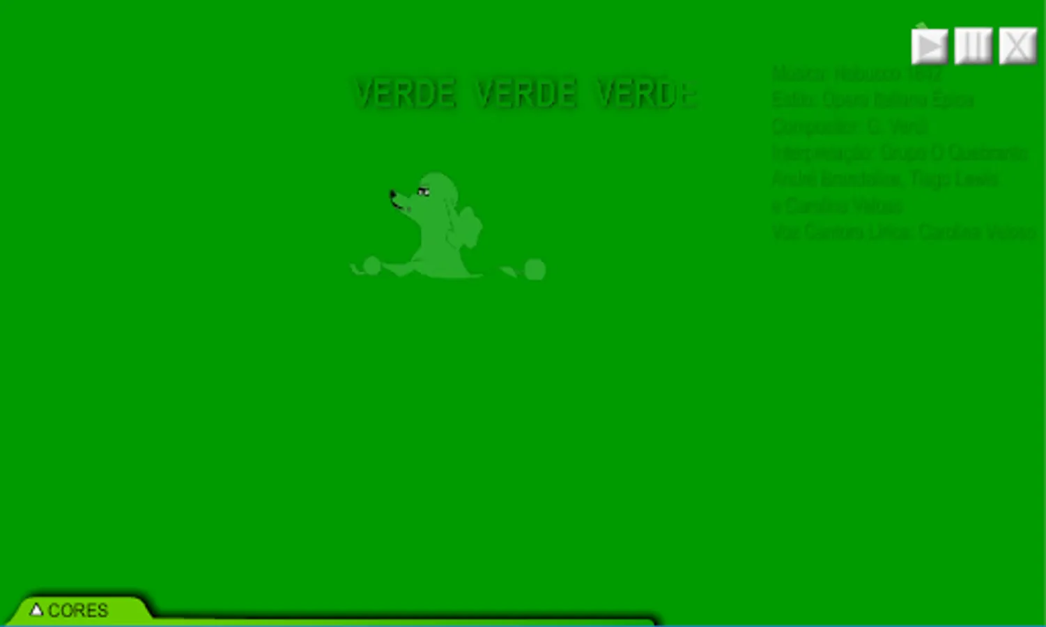 Rocked to the sound of classical music in the beautiful and refined voice of the lyrical singer Carolina Veloso, figures of a puppy, balloons and a train show on the colored screens what blue, red, yellow, etc. are.
