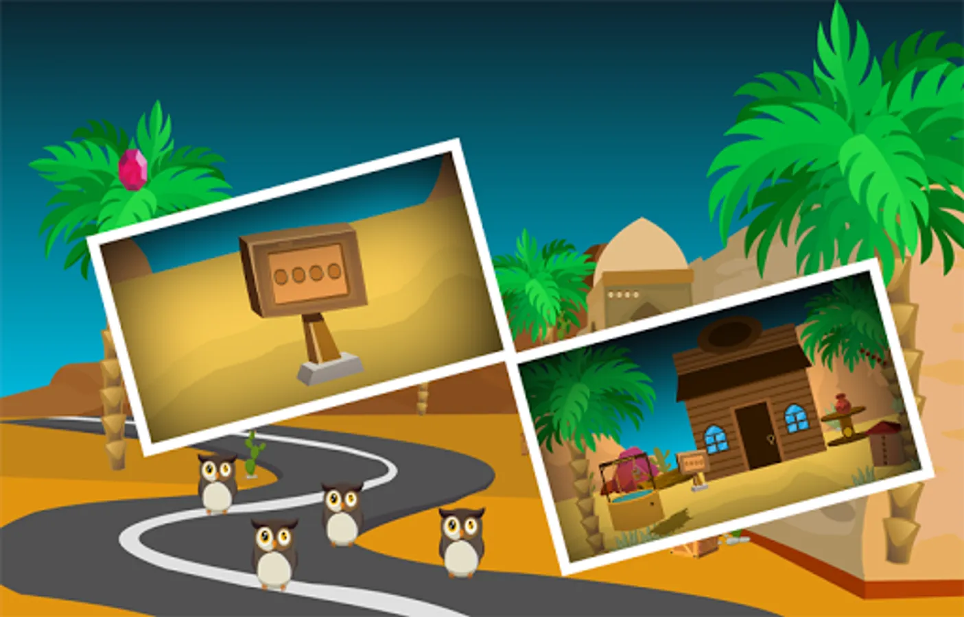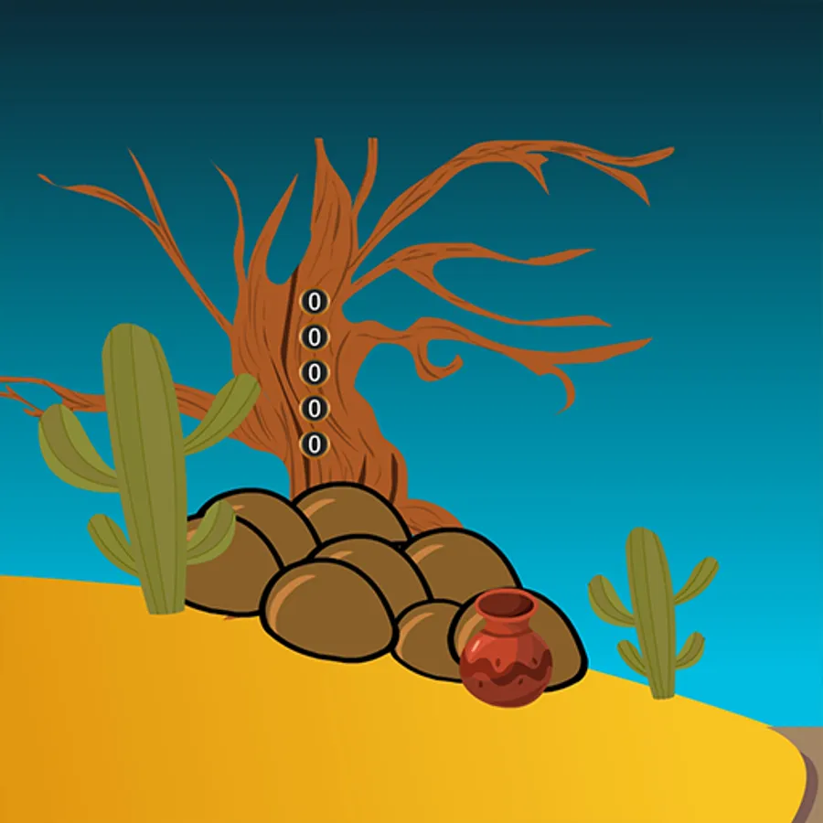 Camels always fascinate you since you were a kid. It is actually your dream to ride one. Now that you are older, you can make that dream happen. So, you went to the desert to see a real life camel. The thought of a camel really excite you but when you saw a camel tied on the tree, your dream changed. You don't want to ride on the camel anymore. Instead, you just want to set it free. You heart melts when you saw a camel looking sad. Today is the perfect day to make your dream come true, you can let the camel free but first, you have to look for items that you can use to untie the poor animal. Second, you have to use your logic to solve all the puzzles in this desert. Good luck and have fun!