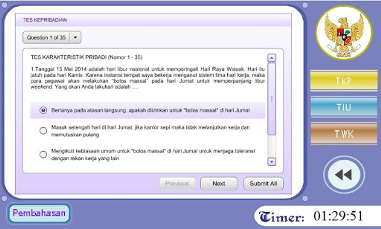 - 35 soal TWK,