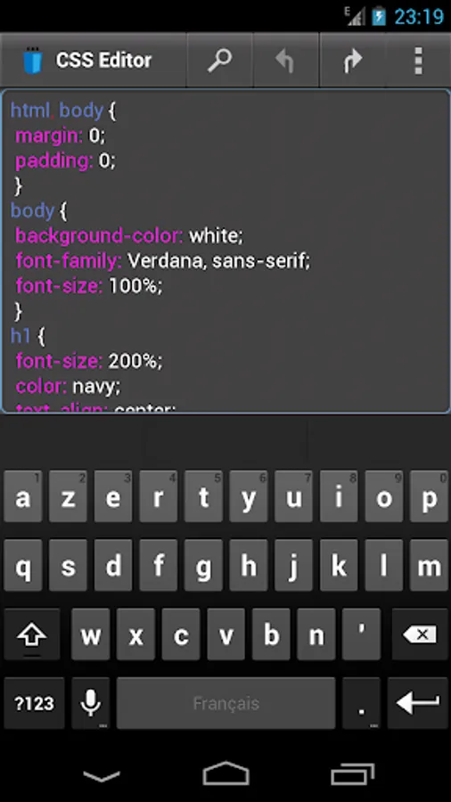 CSS Editor is a very simple CSS editor, it can color the syntax nodes : nodes, attributes, properties, events, support autocompletion and search and replace. Opens the default files with the extensions : css.