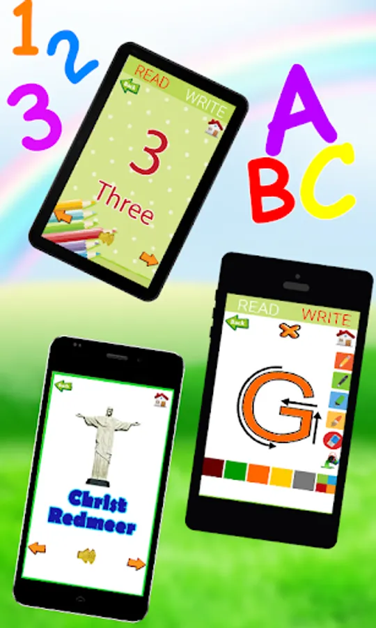 Teaches your kid how to Read and Write a letter and number with the help of sound, pictures and a draw screen where kid can draw letter with his finger.