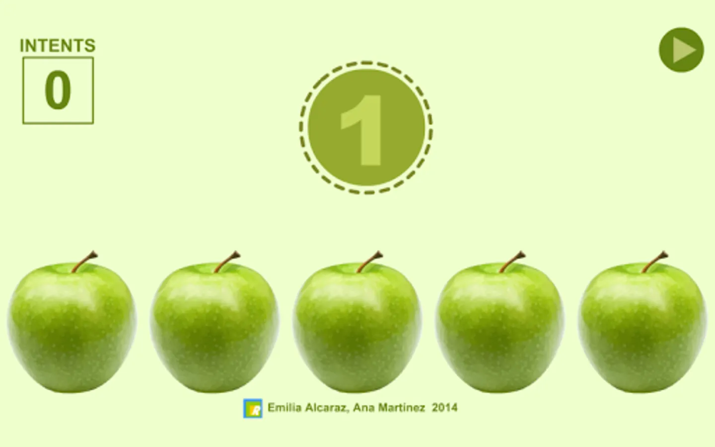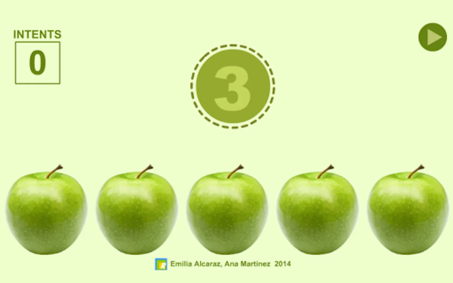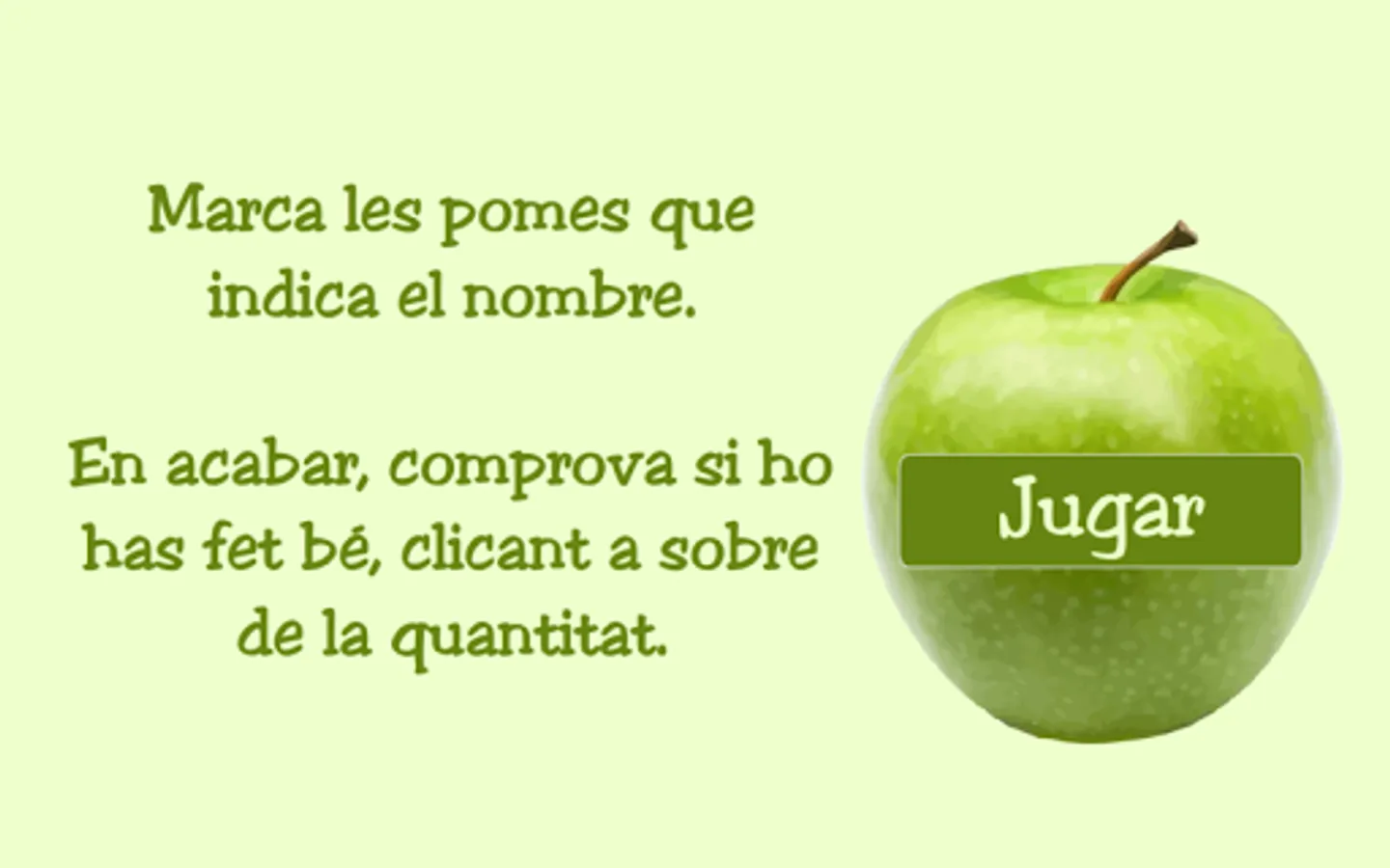 Activity, addressed to students of Infant Education, with which students must mark as many apples as indicated by the proposed amount (up to five). In this way, they take agility at the time of counting.