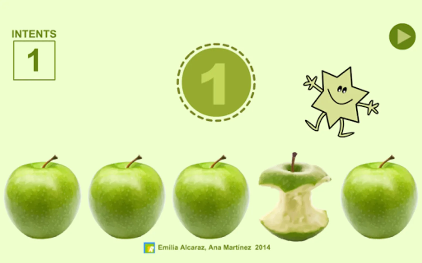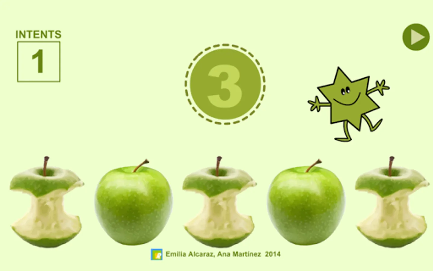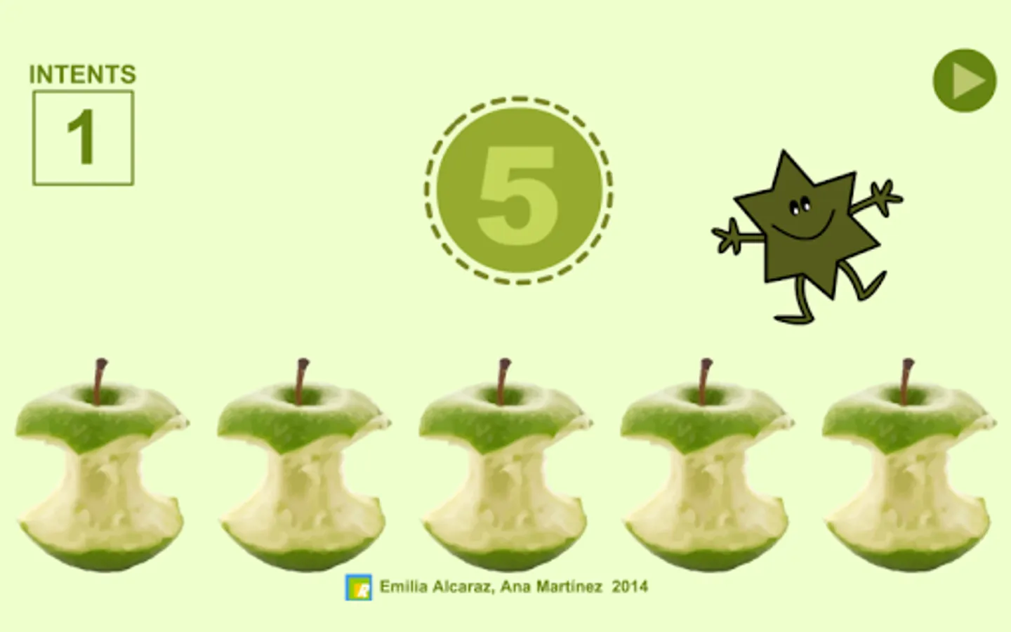 Activity, addressed to students of Infant Education, with which students must mark as many apples as indicated by the proposed amount (up to five). In this way, they take agility at the time of counting.