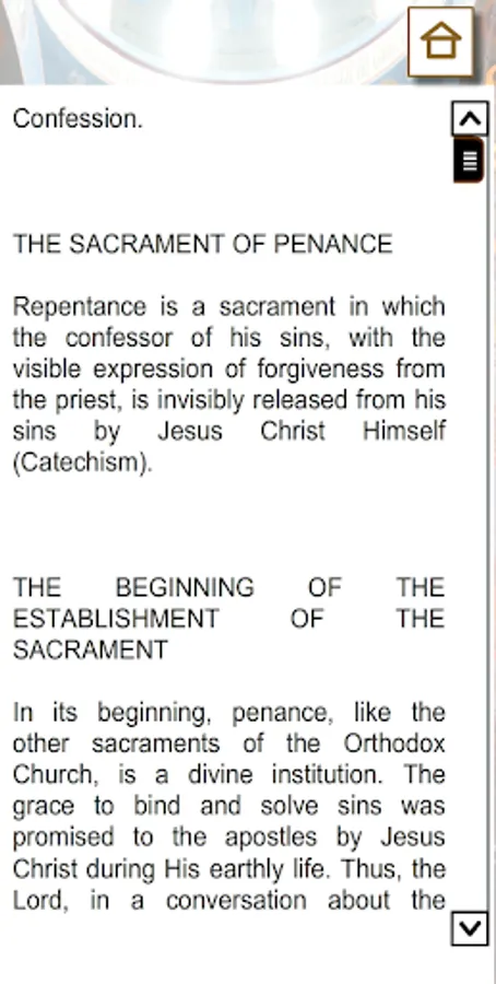 The application Confession was created to help those who wish to prepare for the sacrament of Penance (Confession) in accordance with the traditions of the Orthodox Church. The application Confession contains three sections: