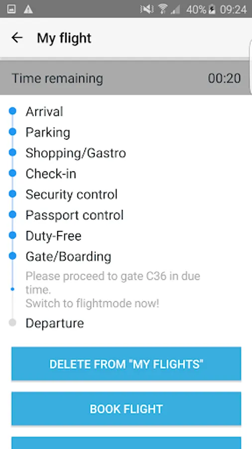 • My Flight: Save your flight data, follow your flight routes on a timeline and activate the push notification service to get information on changes of departure time or gate