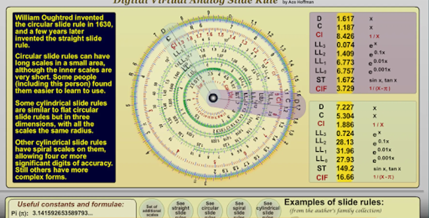 Special thanks to the Oughtred Society for their member's invaluable help in evaluating the earliest versions of this program.