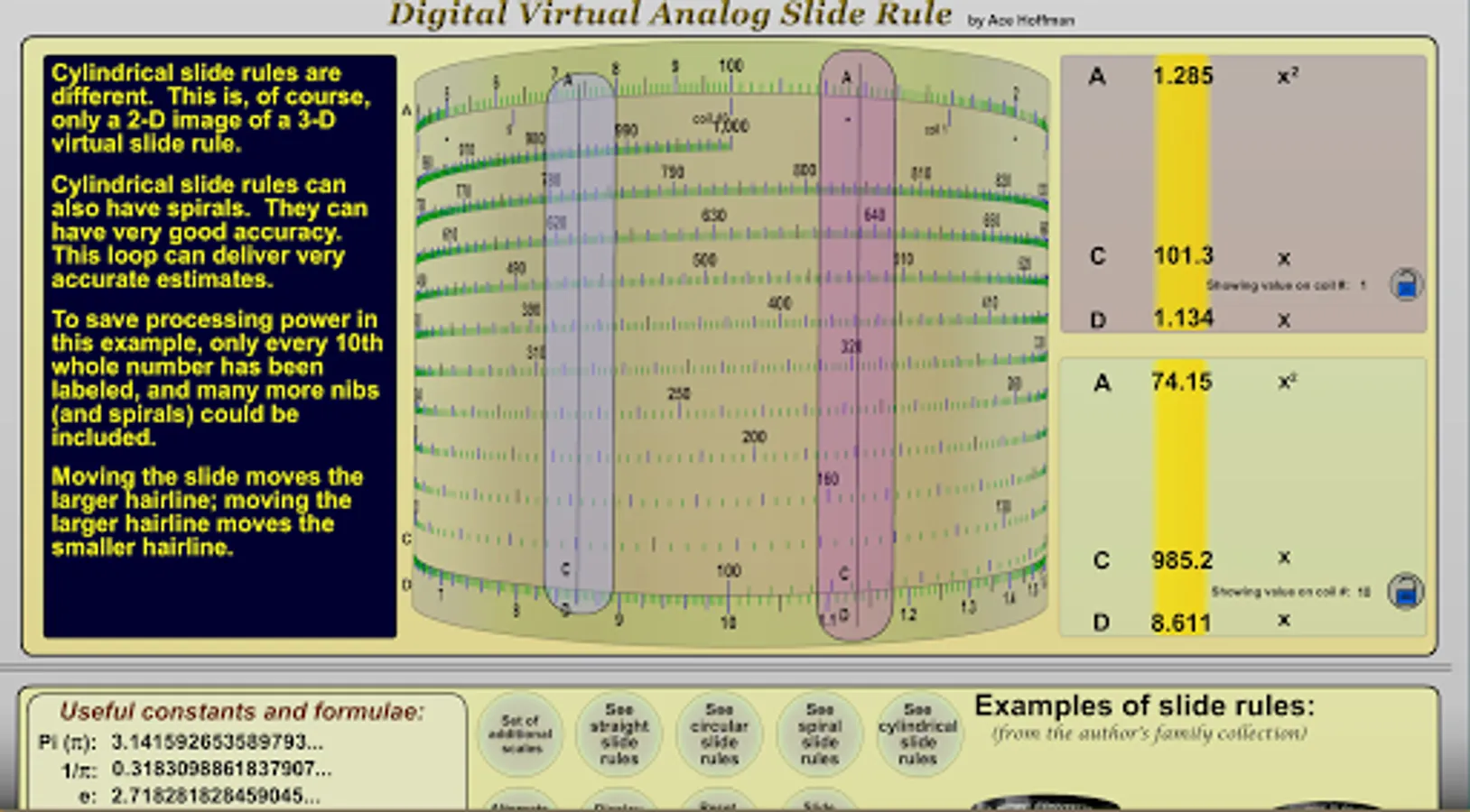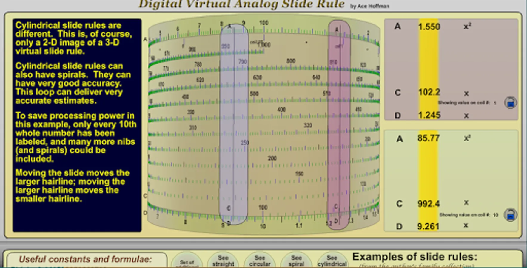 Because of all the detail, it looks best and runs best on a large-format machine such as a tablet. Also because of all the detail, the 30-loop spiral slide rule converts to a low-rez "bitmap data image" while you move it, then back to a "vector based image" as soon as you release.