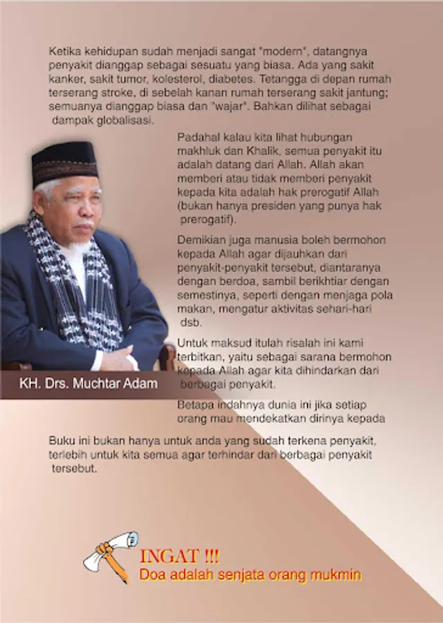 Humans may be asked Allah to be kept away from diseases, including by praying, while his best endeavors, such as by maintaining a diet, organize daily activities, especially, because the Prophet suggested, "Al-Tadâwi bi al-Du'âi "," Berobatlah with prayer, alms Berobatlah, Berobatlah with the recitation. "