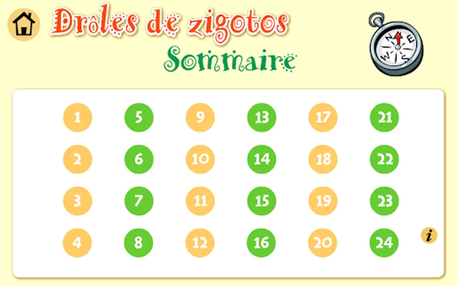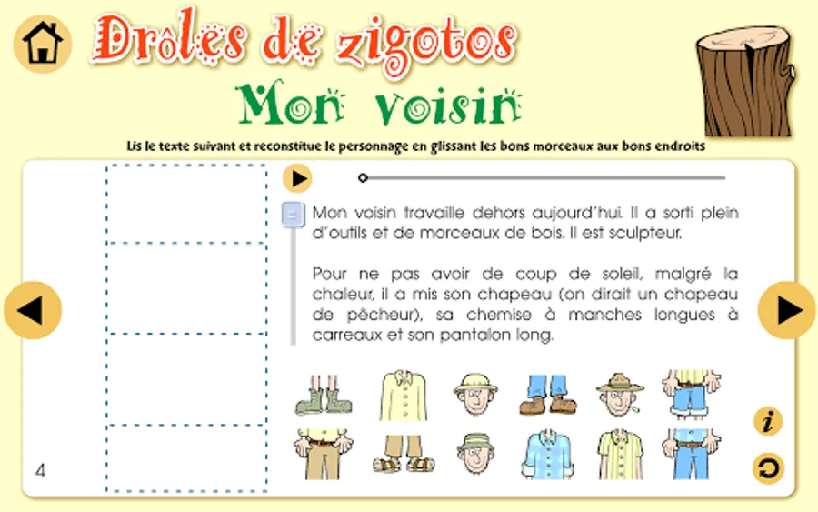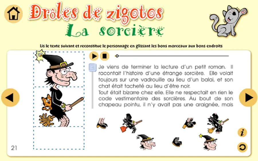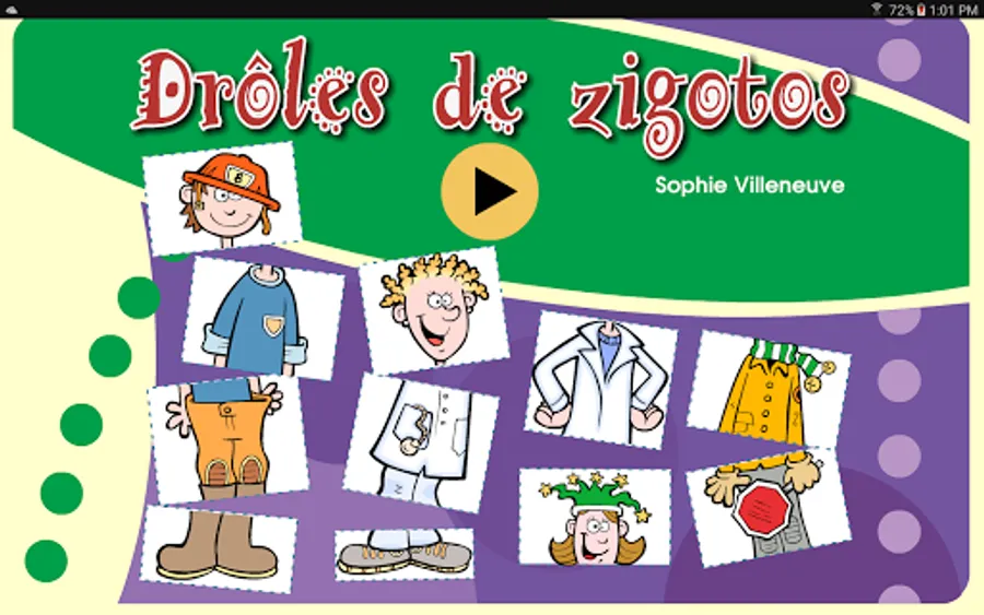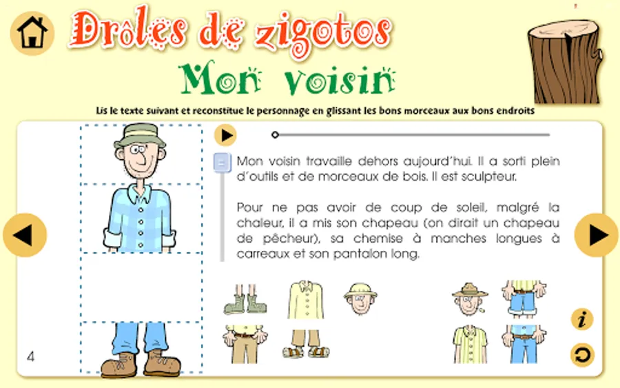 The game "Funny Zigotos" is an educational resource for 2nd and 3rd year students and teachers. It consists of a series of small puzzles. Directly drawn from the volume of the same name, the application allows the user to stimulate his sense of observation, understanding and reading French.
