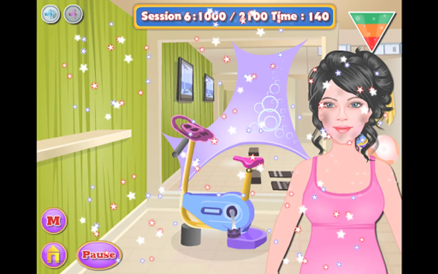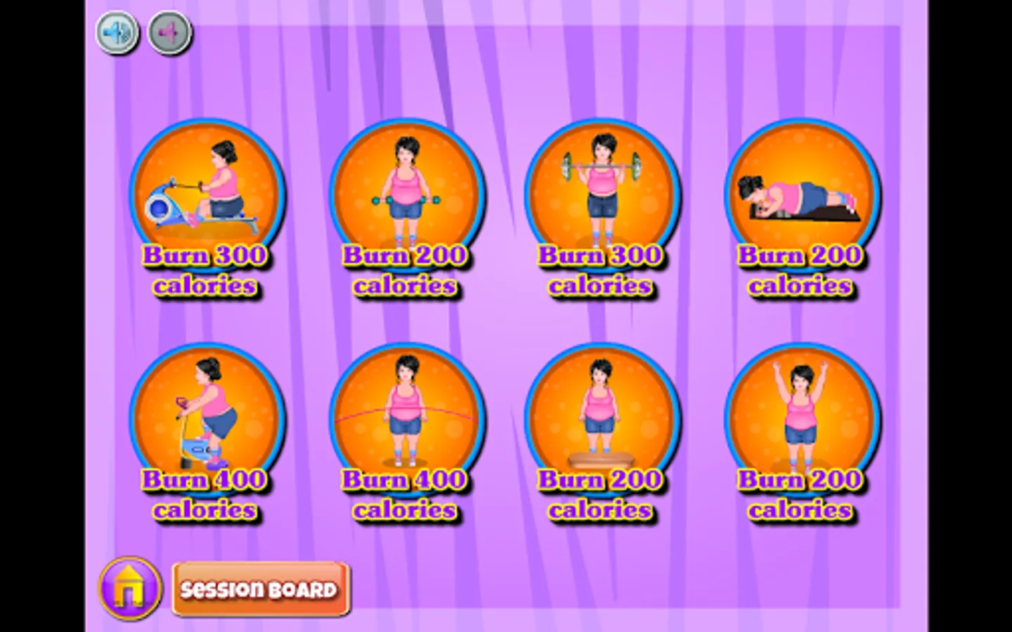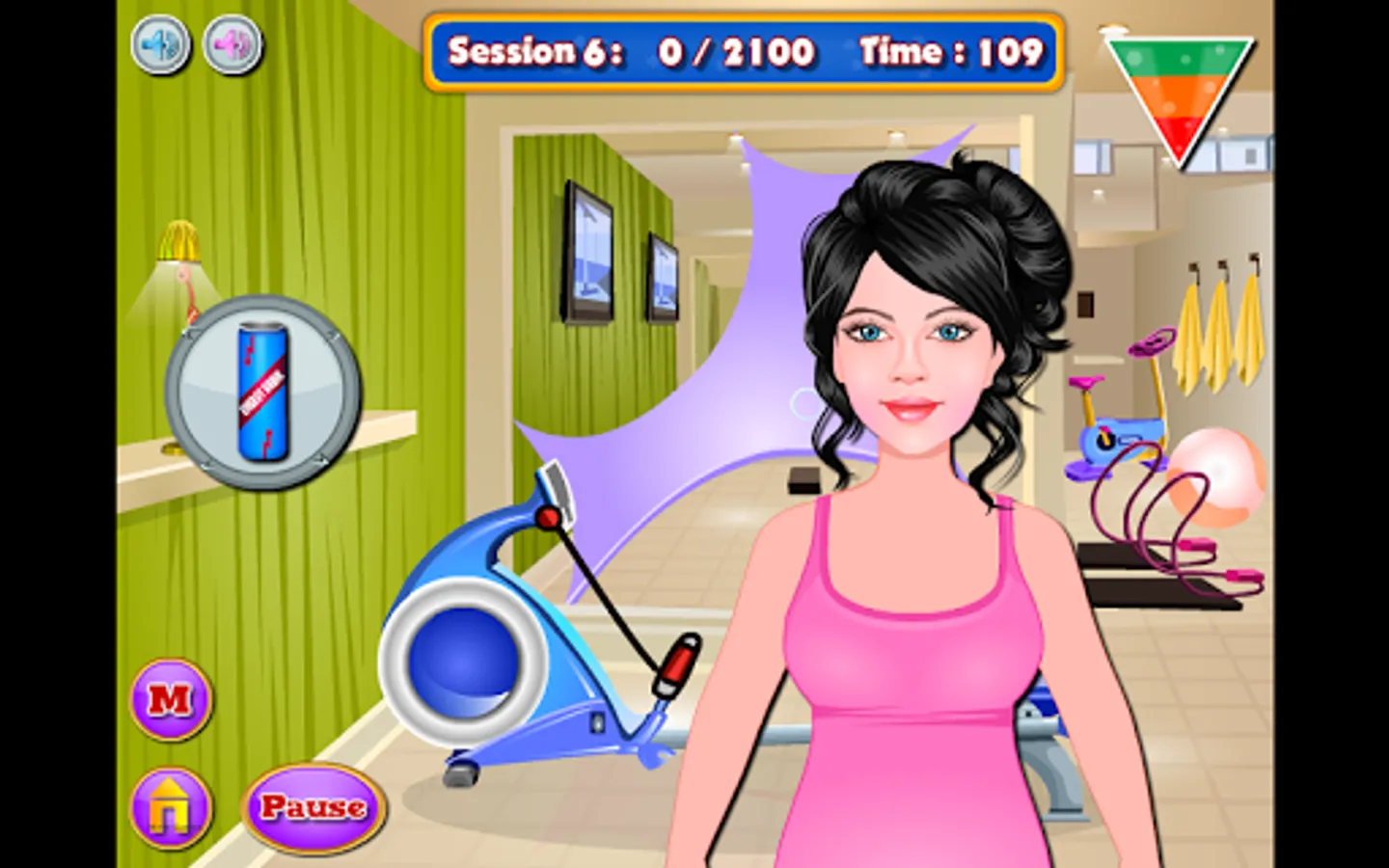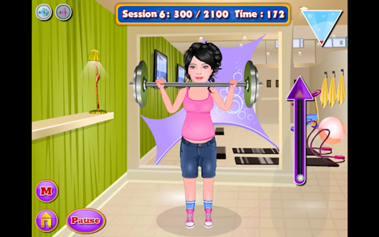 In this fitness girl game you can choose 8 different mini games! Choose do go spinning on a bike, rowing, halter weights lifting, do push ups, jumping ropes and many more.