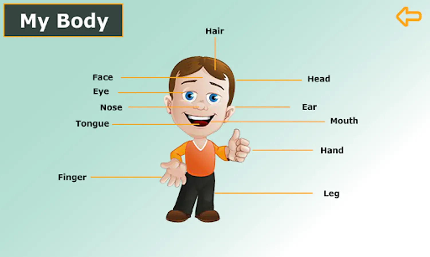 👉 Showing a set of body parts with large images and voice spelling.
