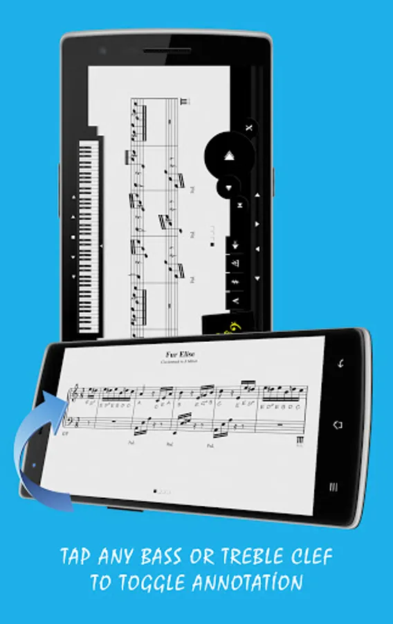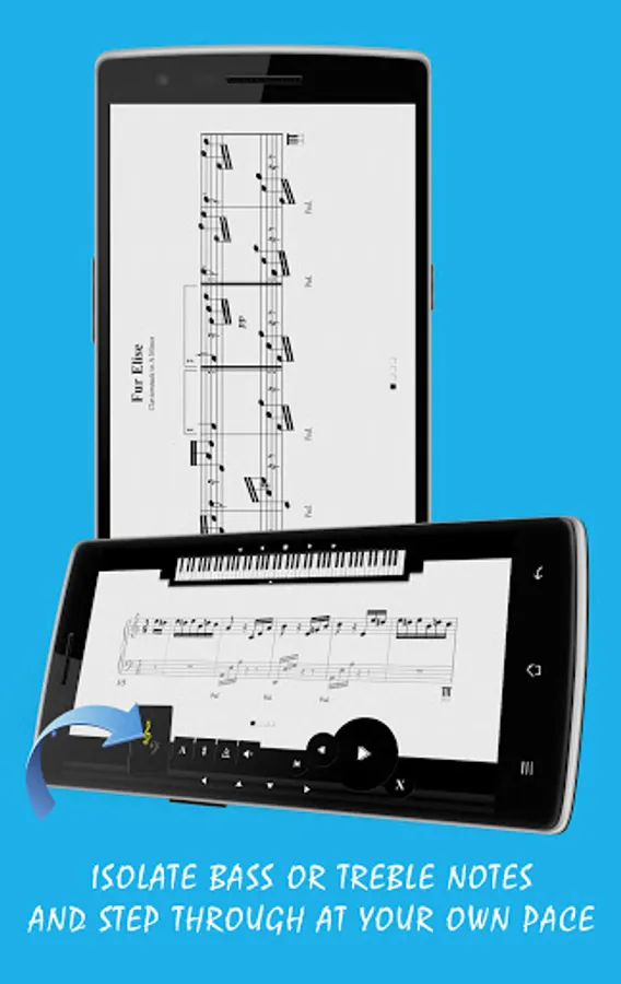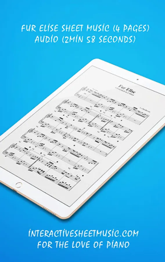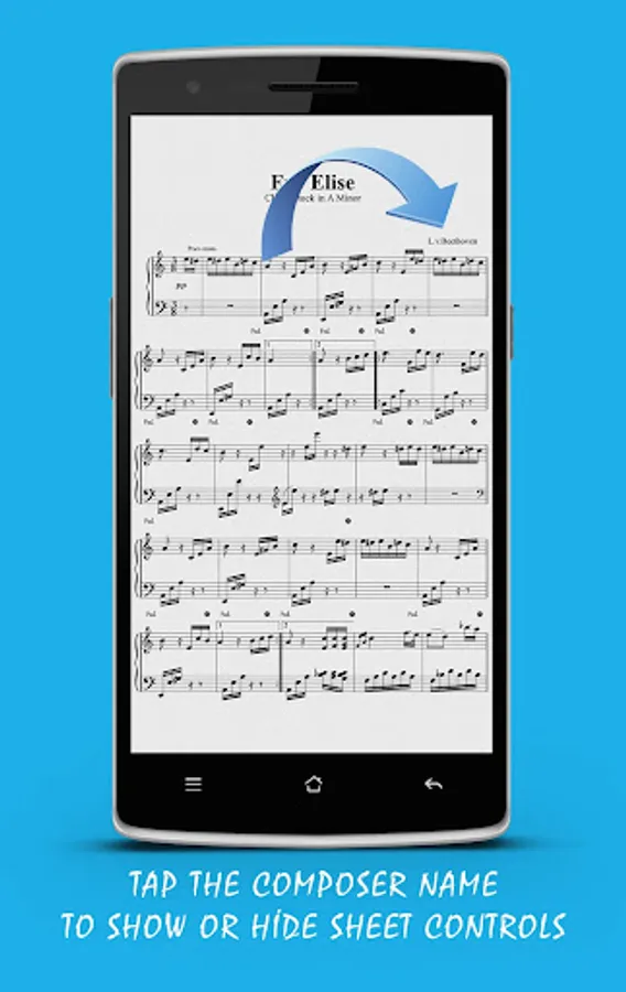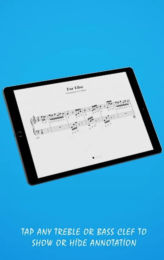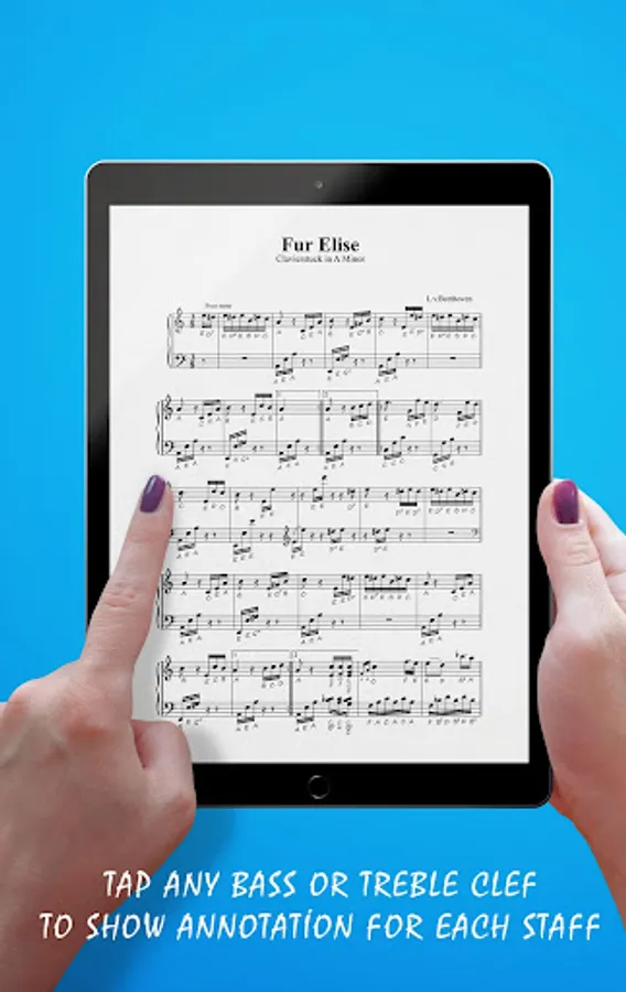 Our Piano Sheet Music App contains interactive features hidden from view upon launch yet quickly accessible when you need them. Tap on the composer name (L.v. Beethoven) to show or hide annotation and fingering or play audio from specific parts of the songbook.
