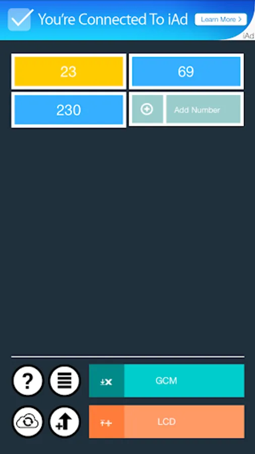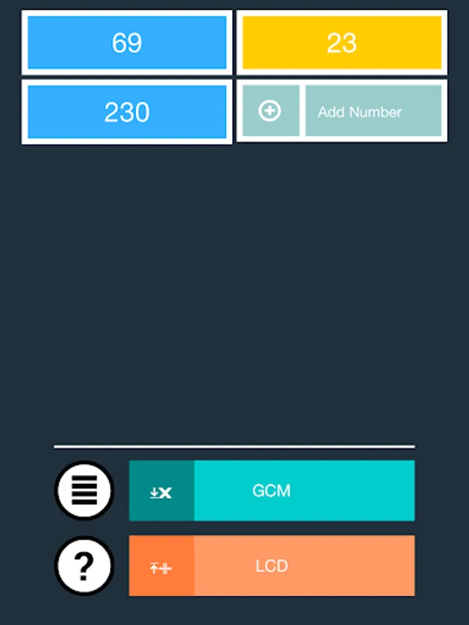 With this app you can get the Greatest Common Divisor (GCD), Lowest Common Denominator (LCD) and Prime Factors