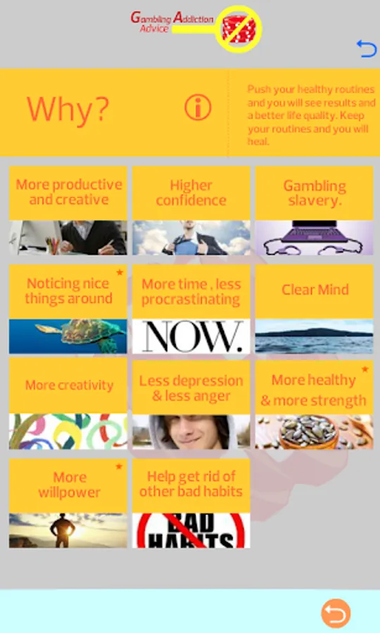 In this app you will find simple guidelines to overcome your gambling addiction. Lifestyle changes, habits and mindset to improve your life.