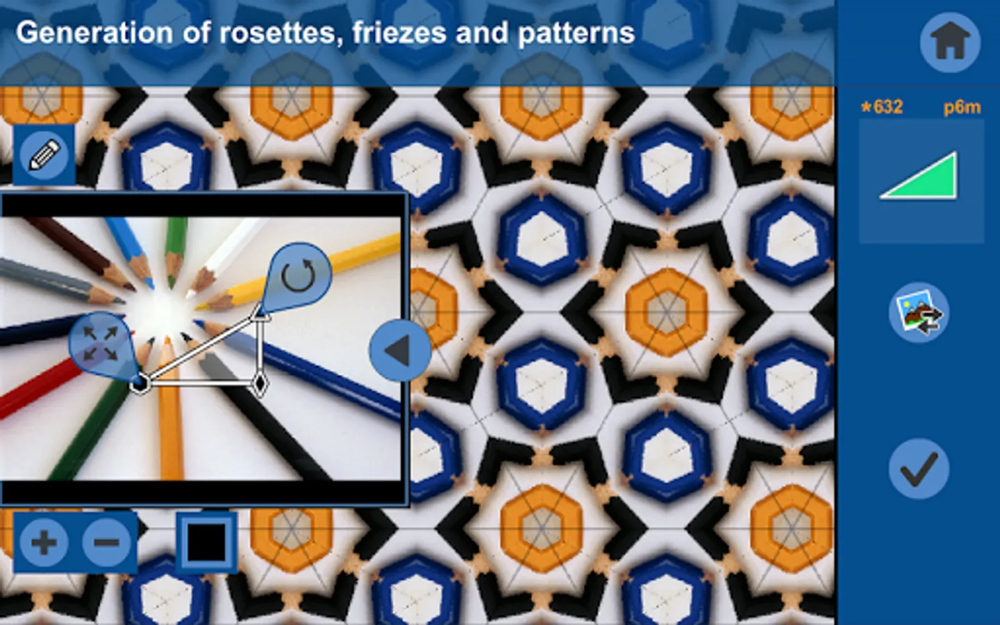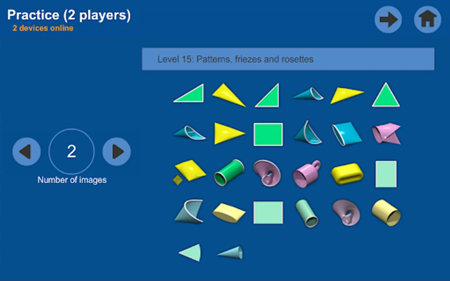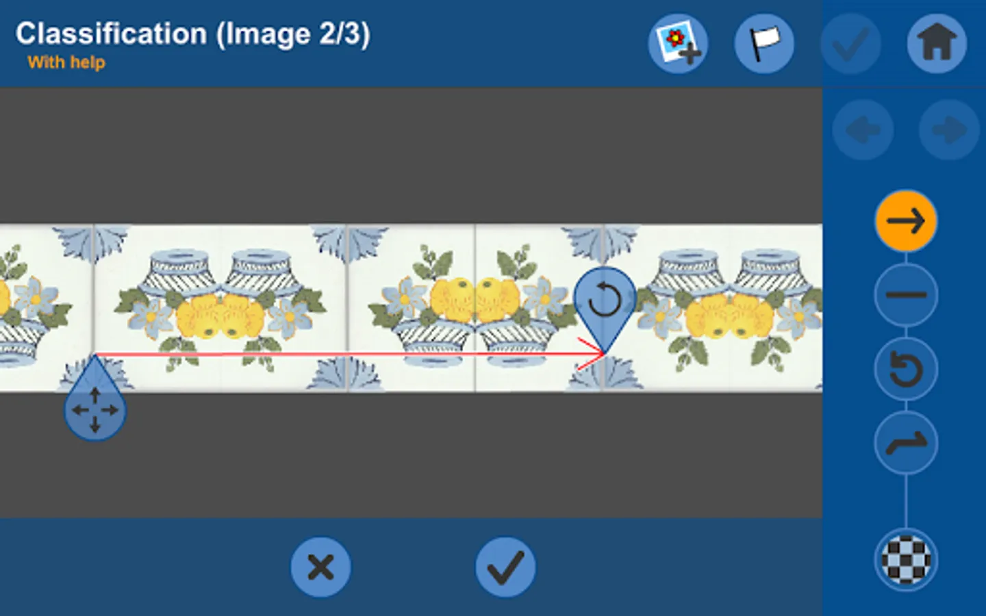 The generator writes encoded information about the existing symmetries in the jpg image file generated. Then the classifier reads and interprets this coded information, which allows it (according to the level of aid chosen) to give information about how the classification process is going, preventing wrong choices, or only indicating at the end whether the classification is correct and, if not, indicating the first mistake.