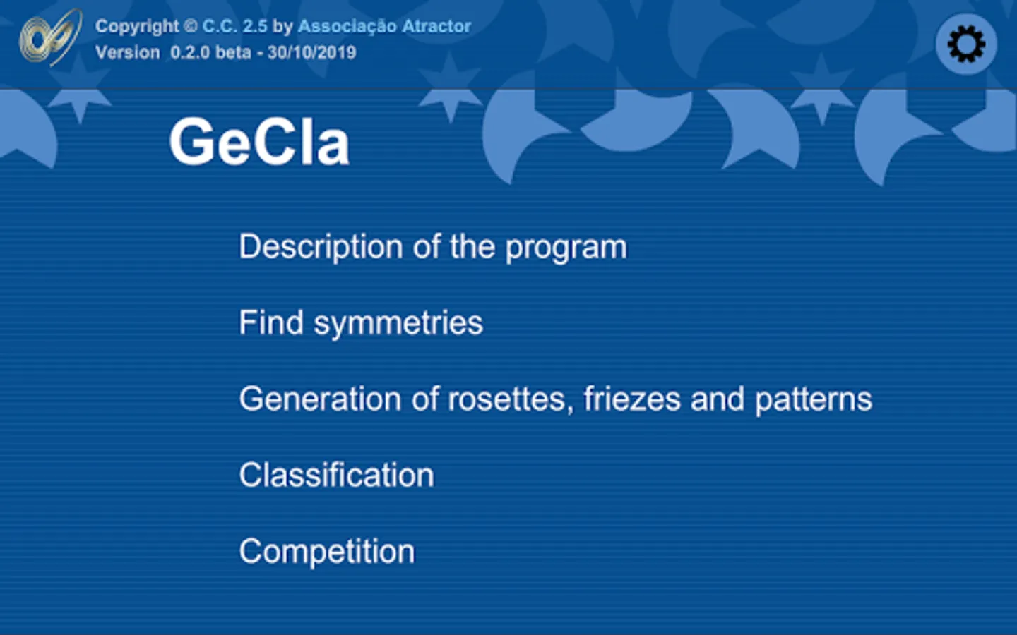 GeCla, short for «Generator» and «Classifier», allows the user to generate a pattern, a frieze or a rosette with a previously chosen kind of symmetry starting from an asymmetric motif. It also allows the classification (with or without help from the program) of the patterns, friezes, rosettes obtained in this manner. In the end, the program provides a report of the errors committed.