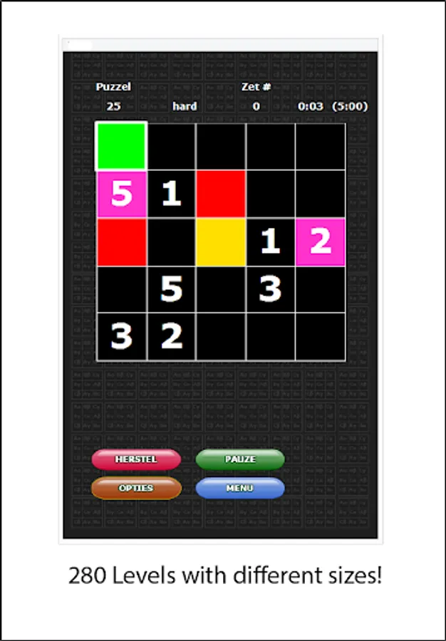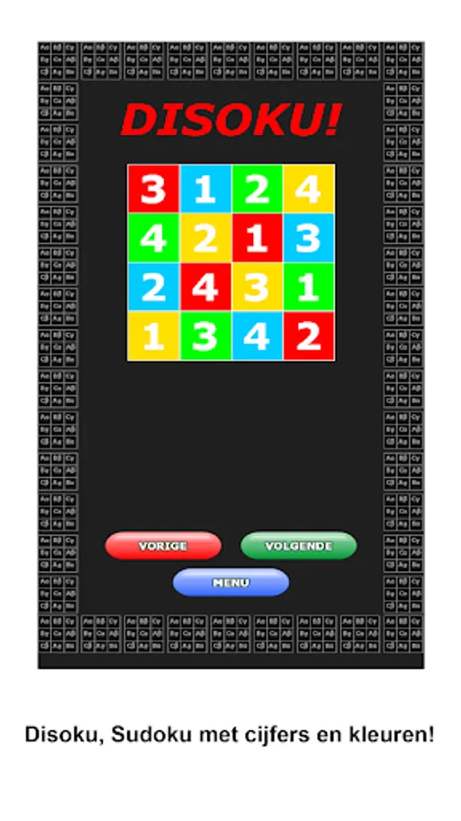 The aim of the game is to place each colour and each number once on each row and each column, with different colour/number combinations.