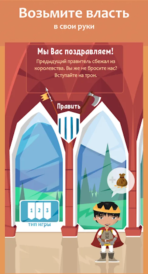 During the reign, you gain experience that at the end of the game can be exchanged for coins, wisdom or buy a place in a bag with opportunity cards.