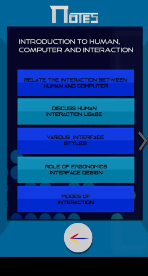 The purpose of this product is to produce a mobile application named HCI Go! Human Computer Interaction is a theoretical subject. Most of the time, the teaching and learning session adopt chalk and talk method. Thus, the production of this application is to enrich the teaching and learning method by adopting the 20th century learning method. This is an interactive learning application. With this application, user will experience the interactive learning for Human Computer Interaction subject. User also can enrich their knowledge in this subject through the interaction in the application. It has the potential to change the way we teach and learn across the typical classroom board. It can upgrade, and expand the participation in lifelong learning. However, it cannot replace lecturers, but in addition to existing methods it can improve quality and achieve their teaching, and reduce time for administration. This is aligned with the 20th century learning method where it enables every student to achieve their potential and help to build an education workforce that is authorized to change. At the same time, the education application will be able to aspire towards future learning communities. In addition, HCI is a subject that is not only learnt by students in colleges or university, but, personnel involved in this field will also can use this application to enrich their knowledge for their daily working activities.
