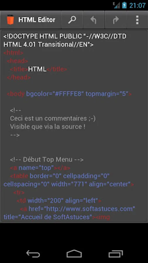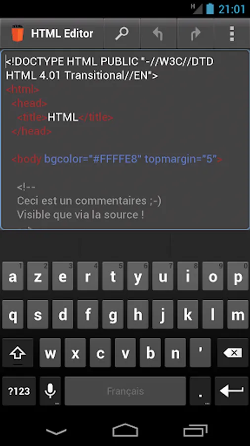 HTML Editor is an easy HTML editor, it can color the syntax : nodes, attributes, JavaScript, CSS, support autocompletion and search and replace. Opens the default files with the extensions : html, htm.