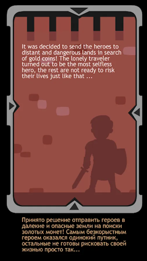 The king decided to send the heroes to distant dangerous lands in search of gold coins! The lonely traveler turned out to be the most disinterested hero, the rest are not ready to risk their lives just like that.