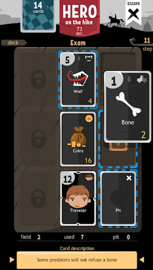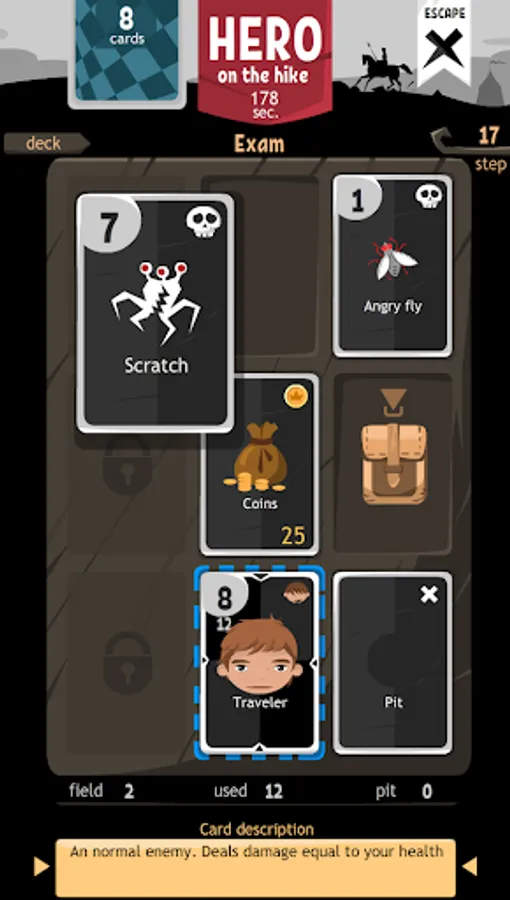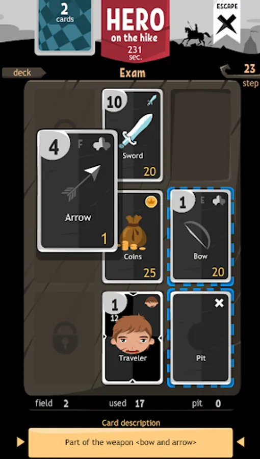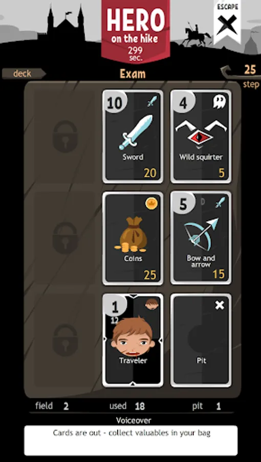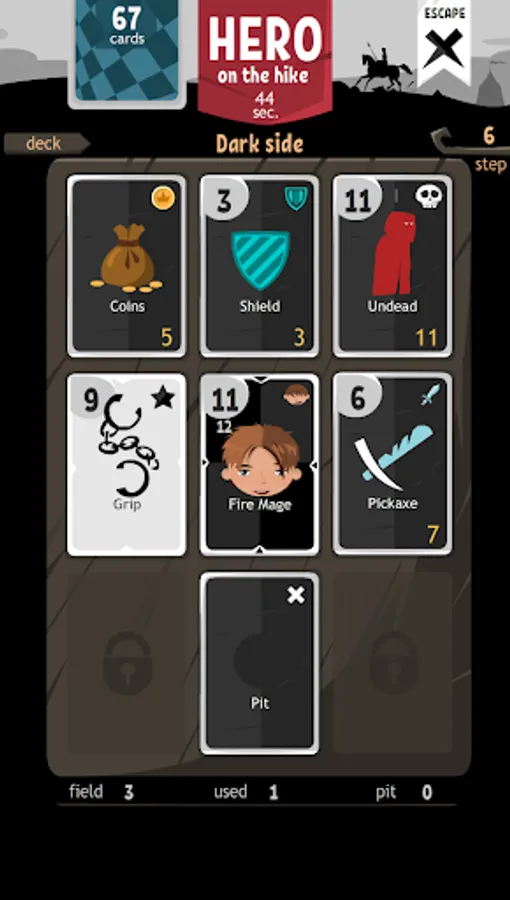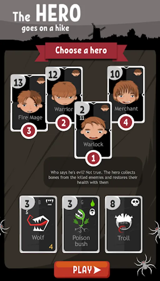 Choose your hero, deck and go! Winning the game gives you coins for the valuables collected in the game. Use coins to unlock new decks, heroes, or spell cards. Improvements to heroes and custom spell cards are available.