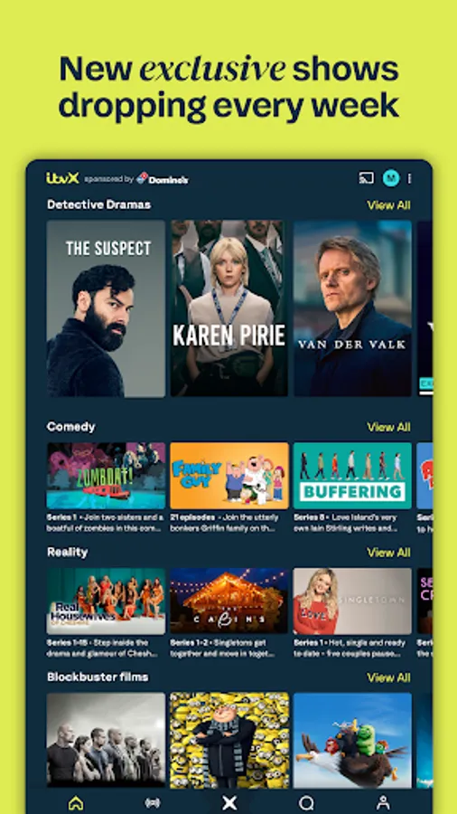 Stream all of ITV and so much more only on ITVX, the UK’s freshest streaming service. So fresh, you’ll find more new shows for free than anywhere else. All coming to a screen near you each and every week. Share the biggest moments in TV – the moments that bring us together. Watch the nation’s biggest live events – the events that connect us. It’s all yours to play with so tune into what you’re into, whenever you want.