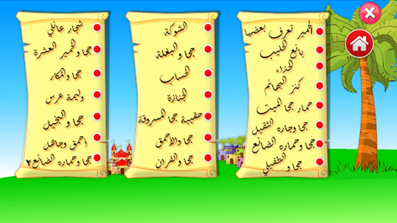 More than 35 stories and a joke of Juha with people such as a thief, grocer, judge, or with his wife, or with animals such as donkey and goose