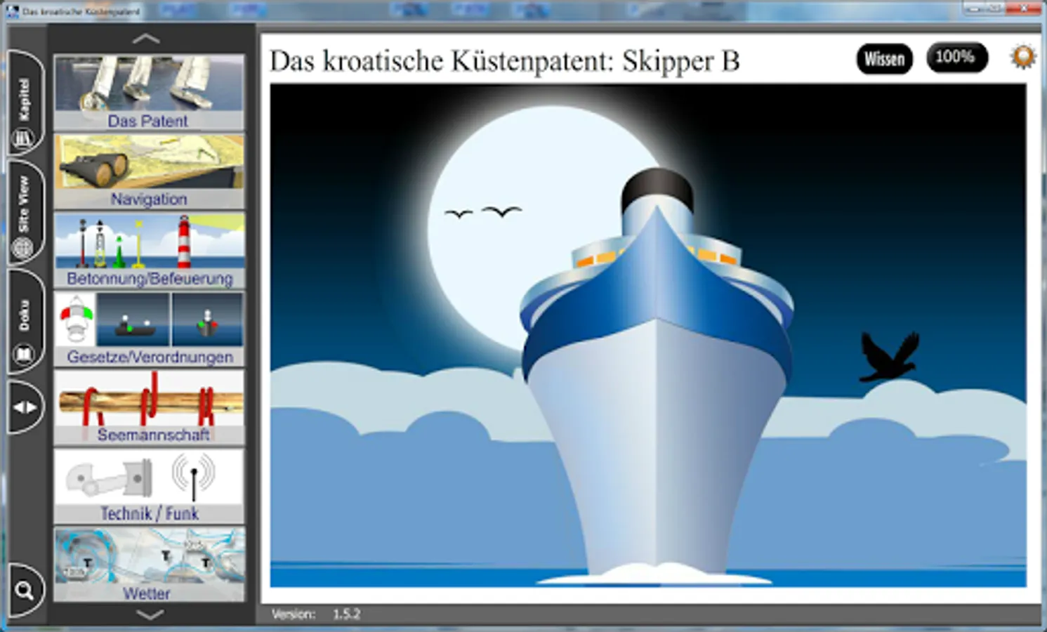 The skipper Trainer "The Croatian coast Patent" is a learning pad which was developed "Skipper B Boat" to prepare for the Croatian patent, but also serves as a reference book of seamanship. With more than 400 illustrations and interactive lessons the substance is vividly conveyed.